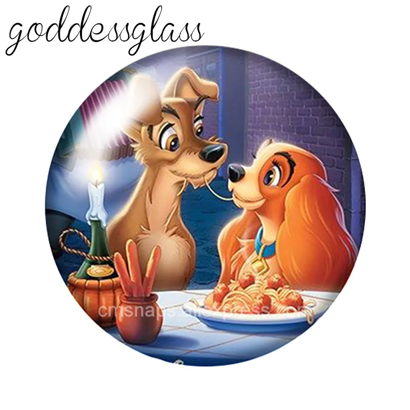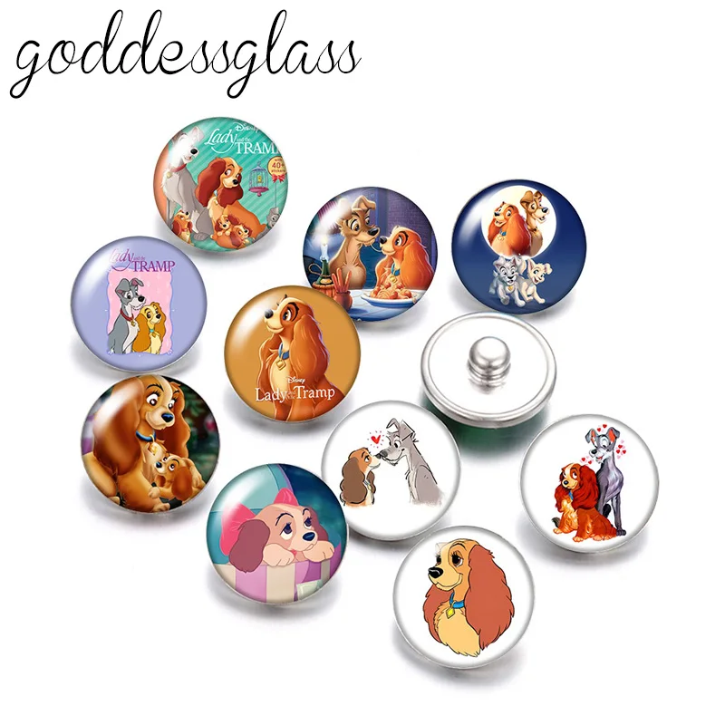 Disney леди и Бродяга собаки 10 шт. круглый фото стекло 18 мм кнопки для 18 мм Оснастки браслеты ювелирные изделия