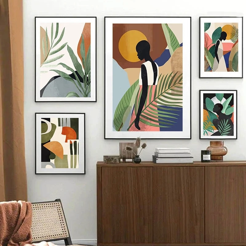 Абстрактный постер, тропический лист, настенная Картина на холсте, черные постеры для африканских женщин, модная Художественная печать, настенные картины в скандинавском стиле, домашний декор