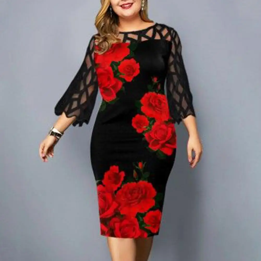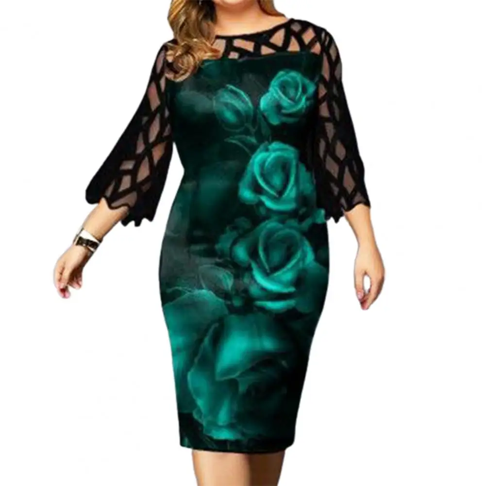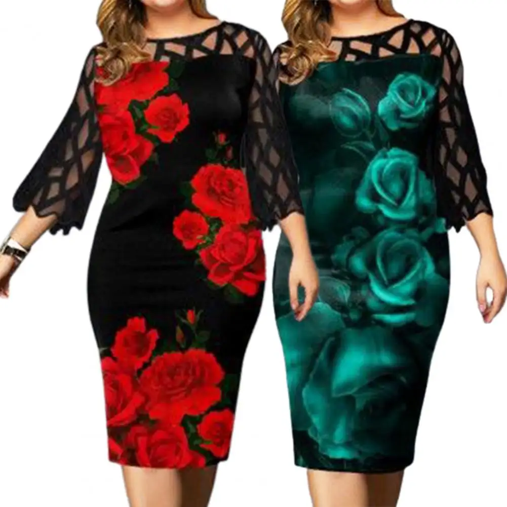 Размера плюс женское летнее платье элегантное розовое Повседневное платье с принтом 2021 новинка из сетчатой ткани с длинными рукавами для дня рождения Клубные вечерние платья 3XL 4XL 5XL