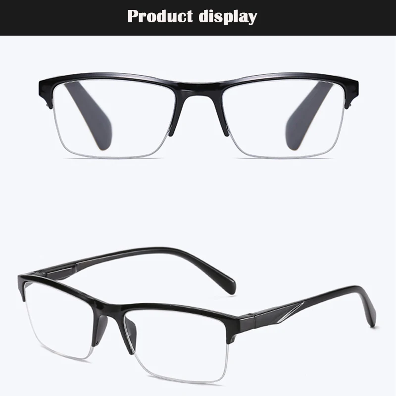 Гибкие квадратные очки для чтения с половинной оправой, унисекс, прозрачные ультралегкие женские очки, черные + 75-+ 400 gafas