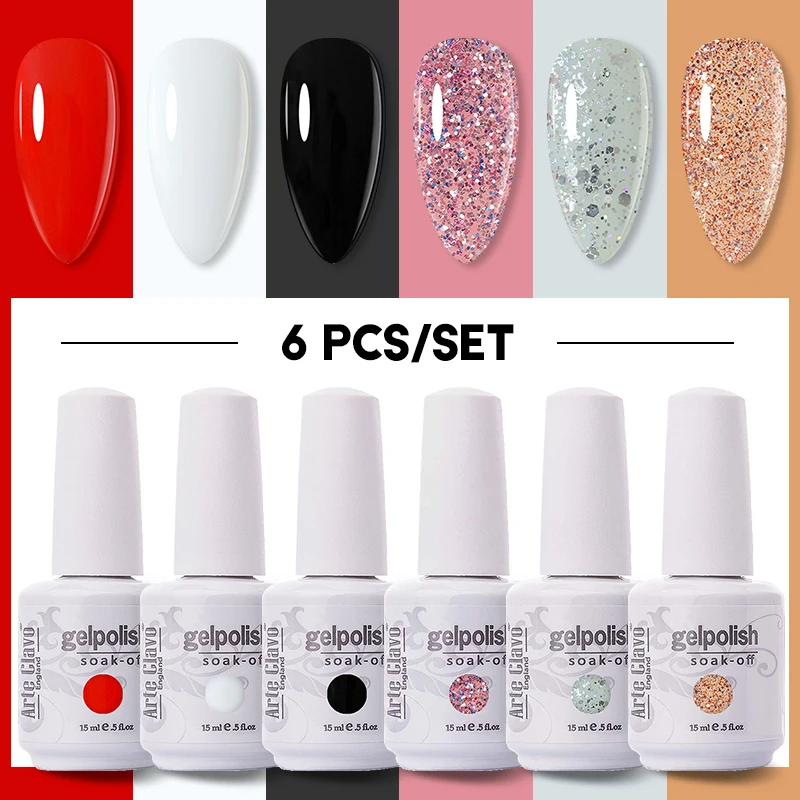 Arte Clavo 15 мл 6 шт./компл. Полупостоянный набор гель-лаков для ногтей для УФ светодиодный верхний слой для Гель-лак для нейл-арта набор гель-лаков