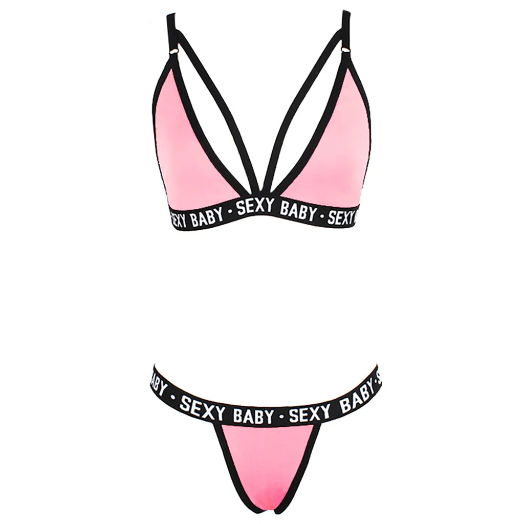Модное женское Нижнее Белье, женское сексуальное однотонное лоскутное сексуальное Нижнее Белье с буквами для женщин, сексуальный комплект с бюстгальтером, Нижнее Белье, Комплект со стрингами, Нижнее Белье