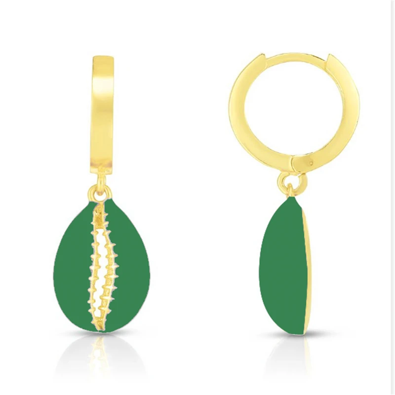 Женские серьги-кольца из стерлингового серебра 925 пробы с разноцветной эмалью в виде ракушек, ювелирные изделия для девочек, летние пляжные серьги