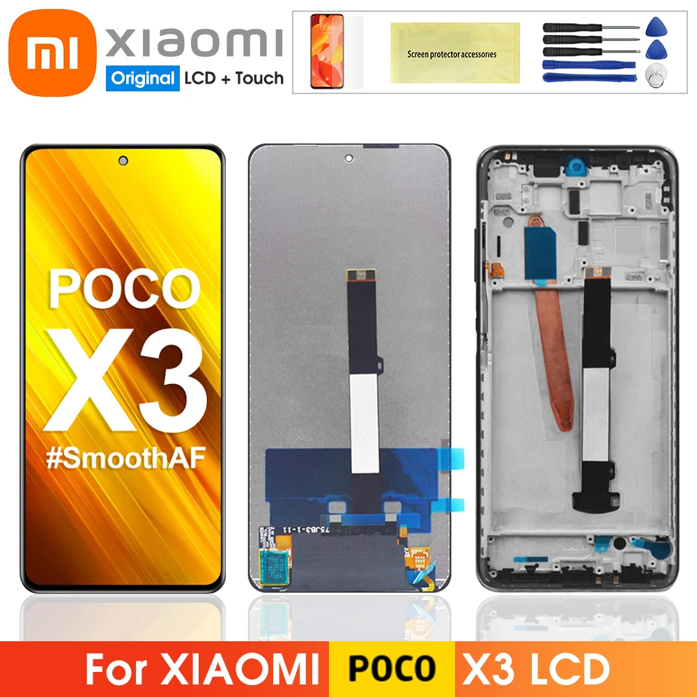 Оригинальный ЖК-дисплей Xiaomi Poco X3 6,67 дюйма с рамкой, сенсорн...