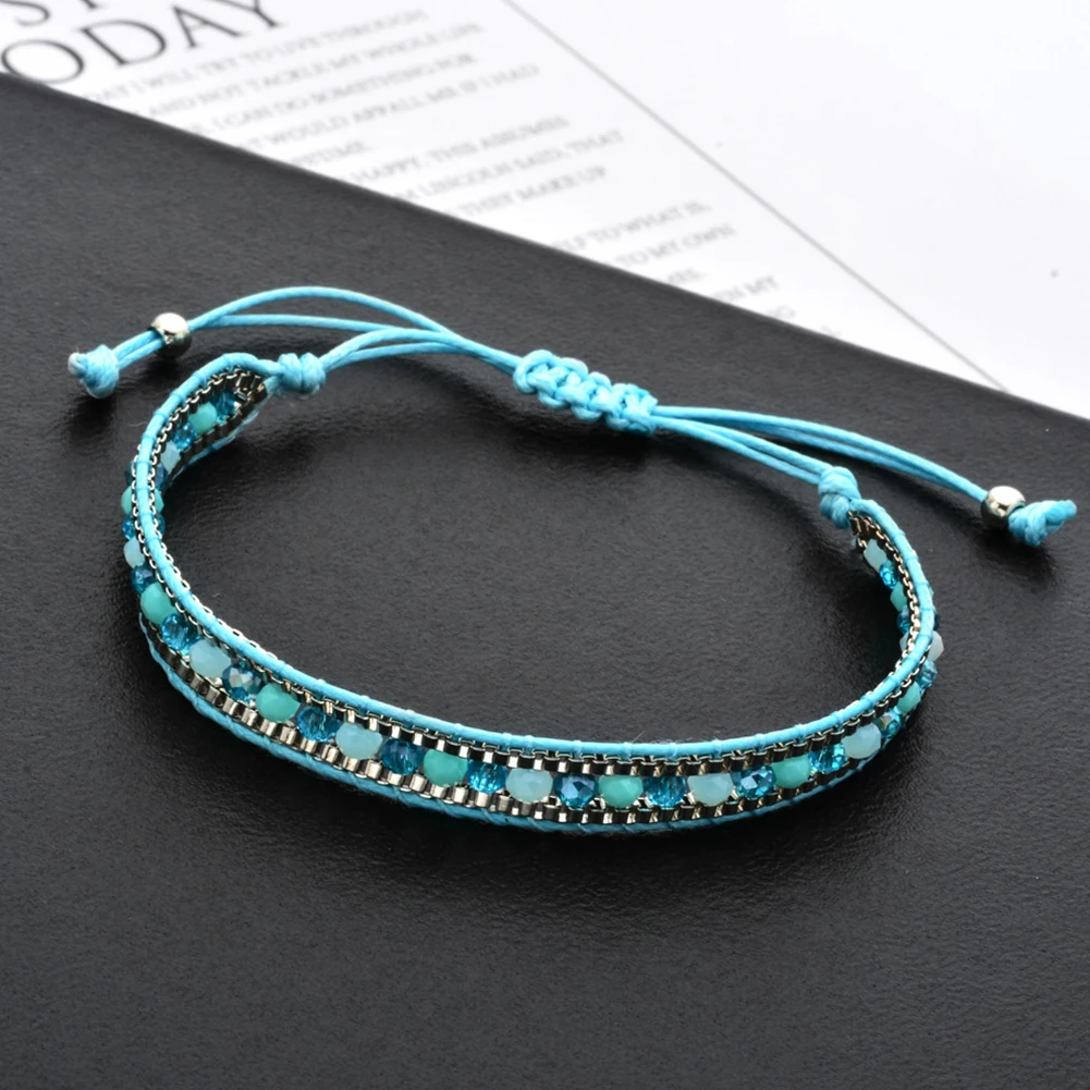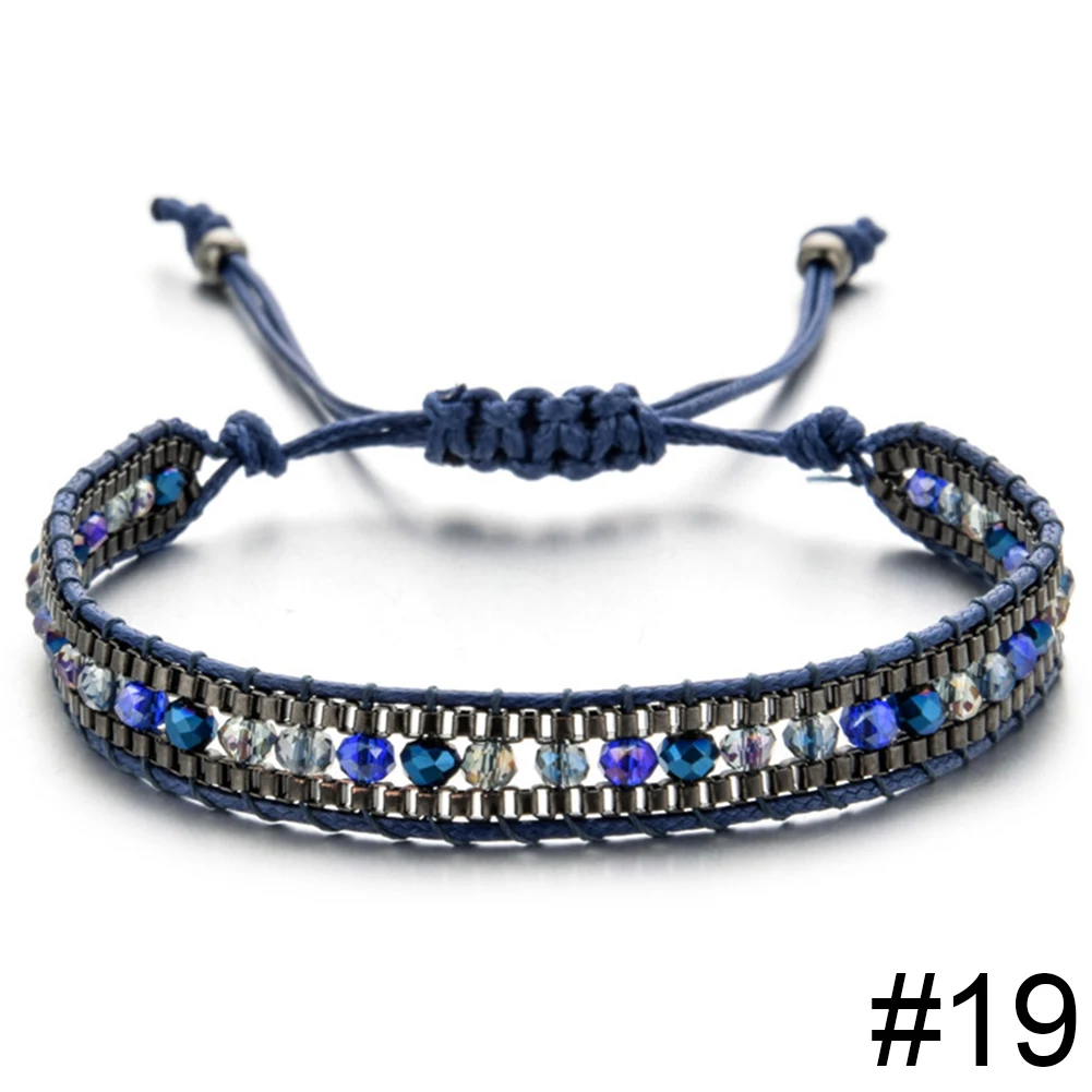 Браслет ручной работы для мужчин и женщин, регулируемая веревочная цепочка с подвесками-кристаллами в богемном стиле, модное Ювелирное Украшение в подарок