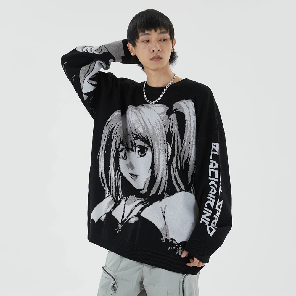Японский мультяшный черный женский свитер с длинным рукавом Harajuk...