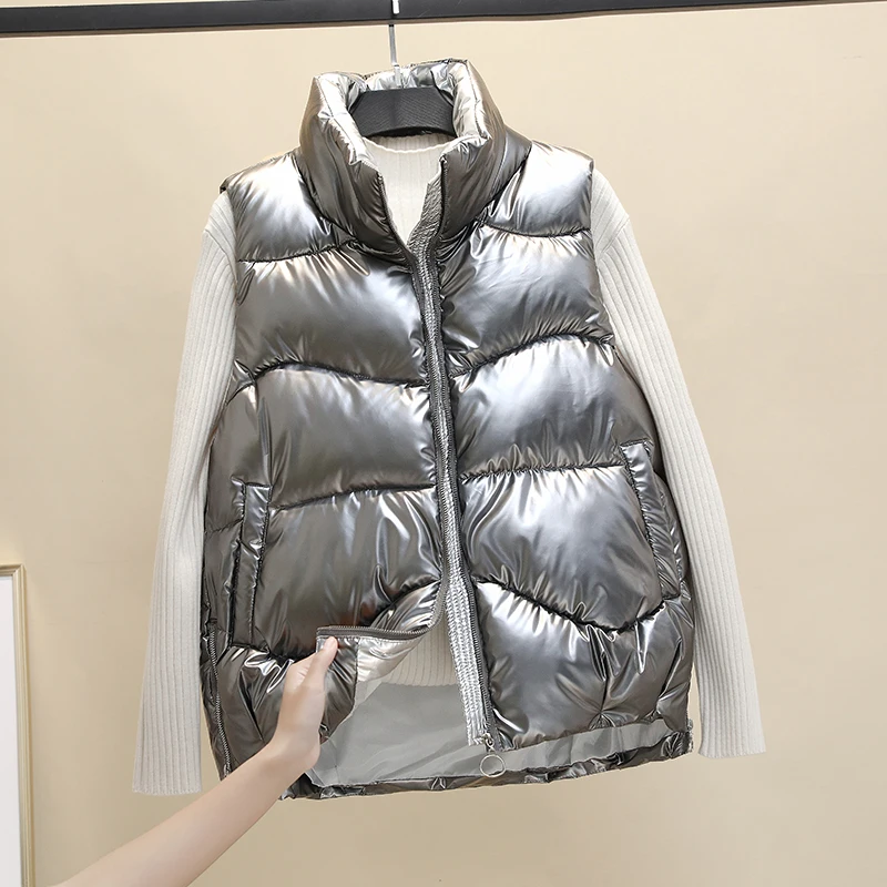 Новая мода 2021 зимние жилеты для девочек для женщин теплое зимнее пальто женская зимняя куртка воротник-стойка жилет с воротником Леди Верхняя одежда серого цвета