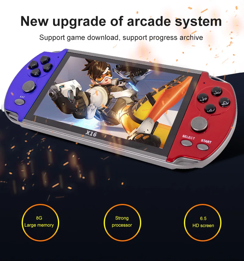 2021 ручная игровая консоль X16 6,5 дюймов, портативная консоль 8 ГБ, ретро, Классическая игровая консоль, игровые автоматы