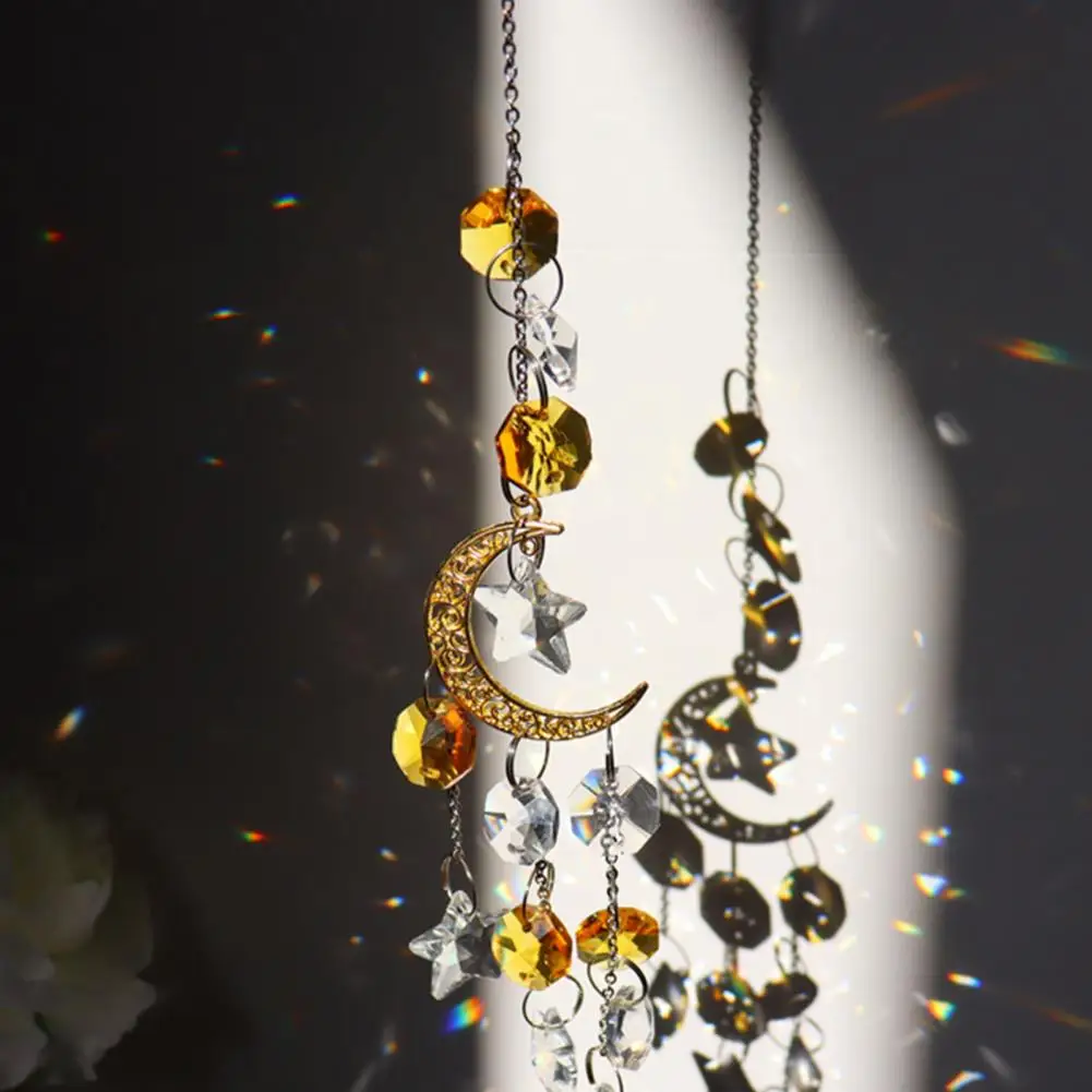Подвесной кулон, изящный декоративный искусственный кристалл, привлекательная звезда, луна, ветряной Ловец Солнца для гостиной, подвесное украшение