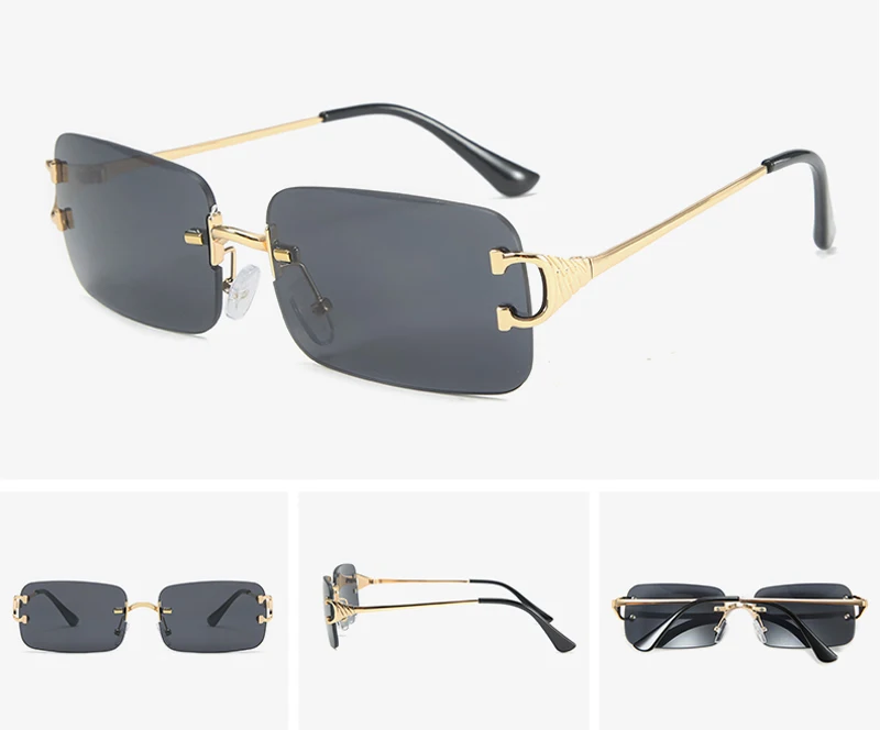Солнцезащитные очки в стиле ретро, без оправы, с защитой от УФ-лучей