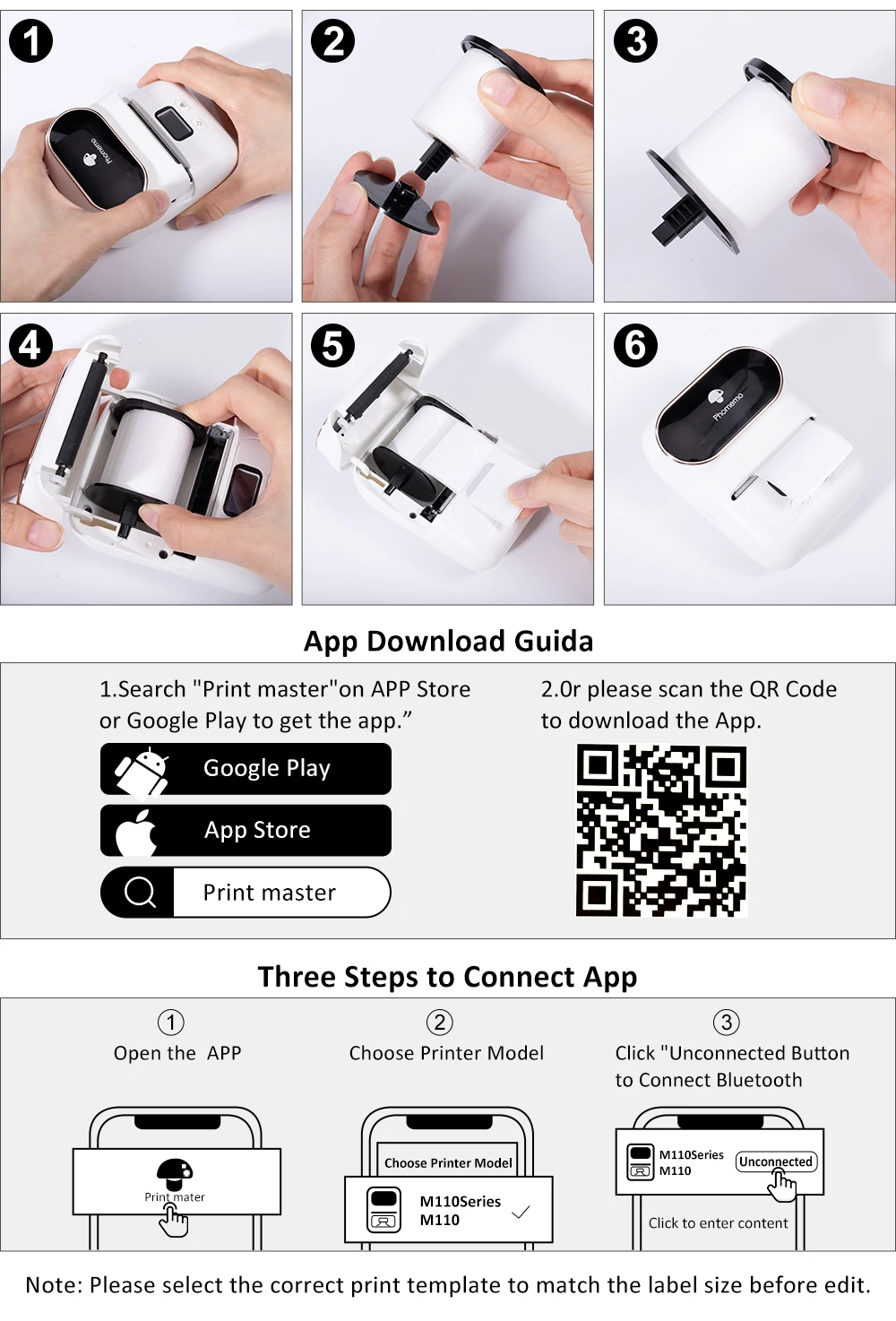 Приложение «PRINT MASTER» этого беспроводного производителя этикеток bluetooth поставляется с множеством готовых к использованию шаблонов этикеток для удобной печати.