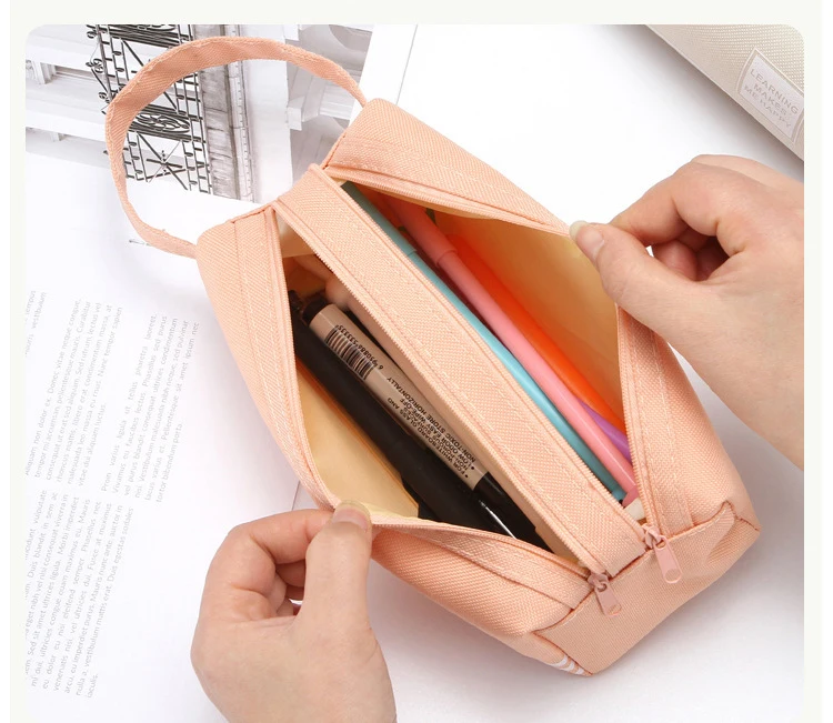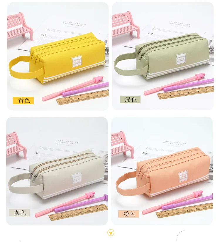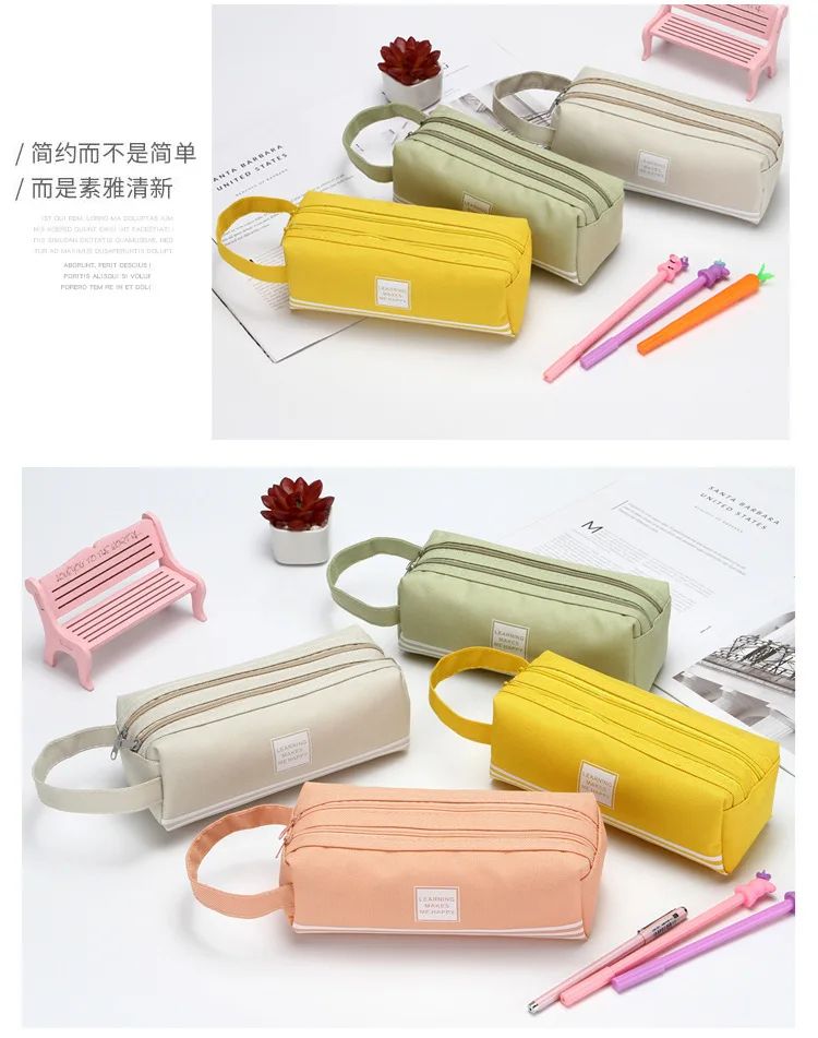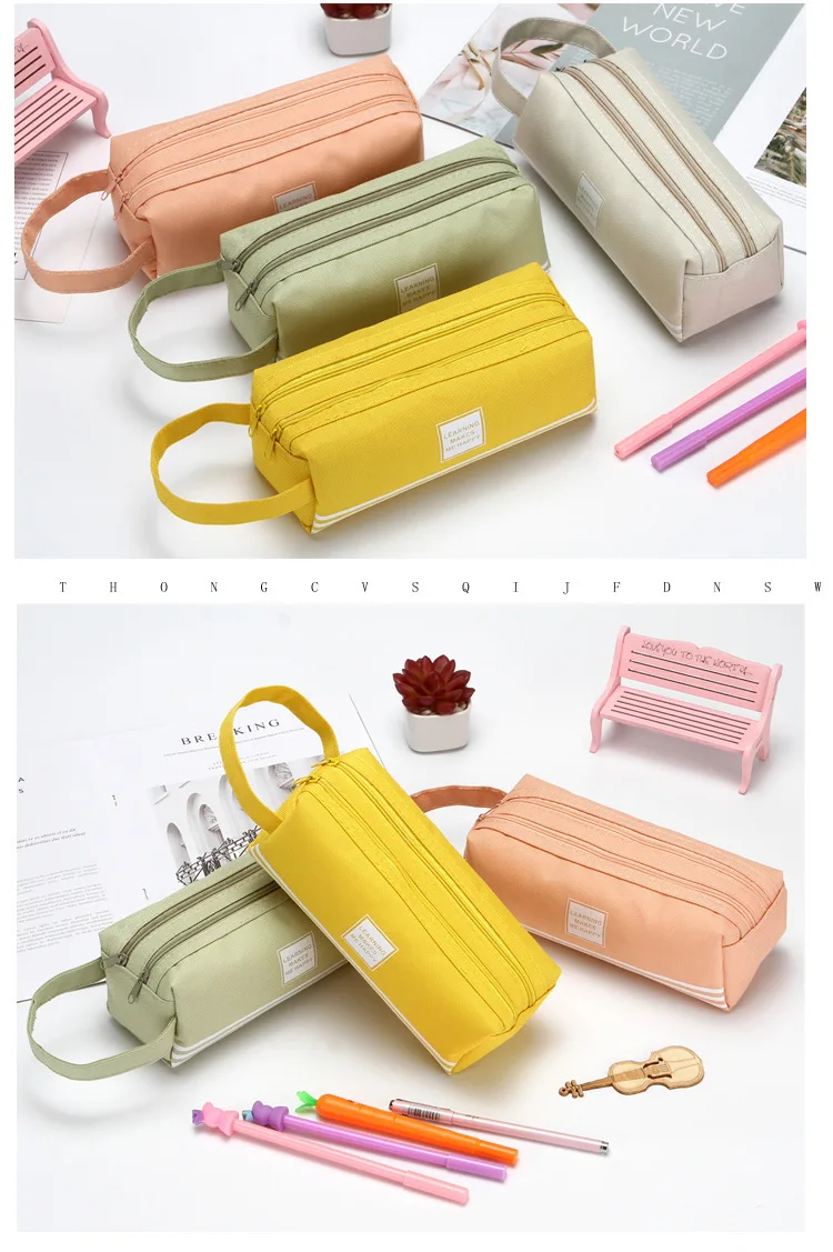 Двухслойный чехол для карандашей на молнии сумка для карандашей ярких цветов, простой портативный чехол для канцелярских принадлежностей, школьные и офисные принадлежности