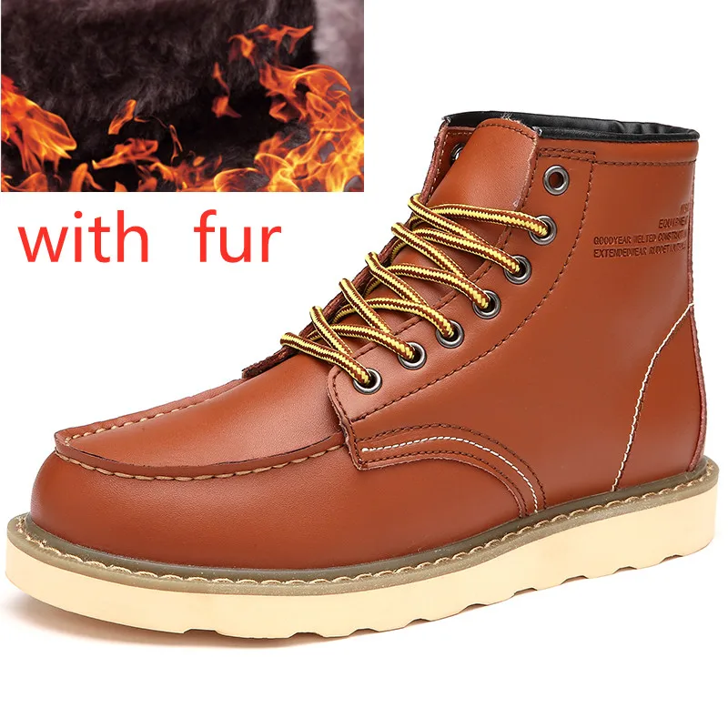 Ботинки мужские зимние, кожаные, с мехом, плюшевые, водонепроницаем...