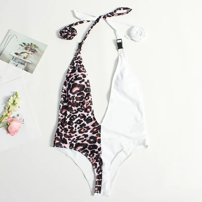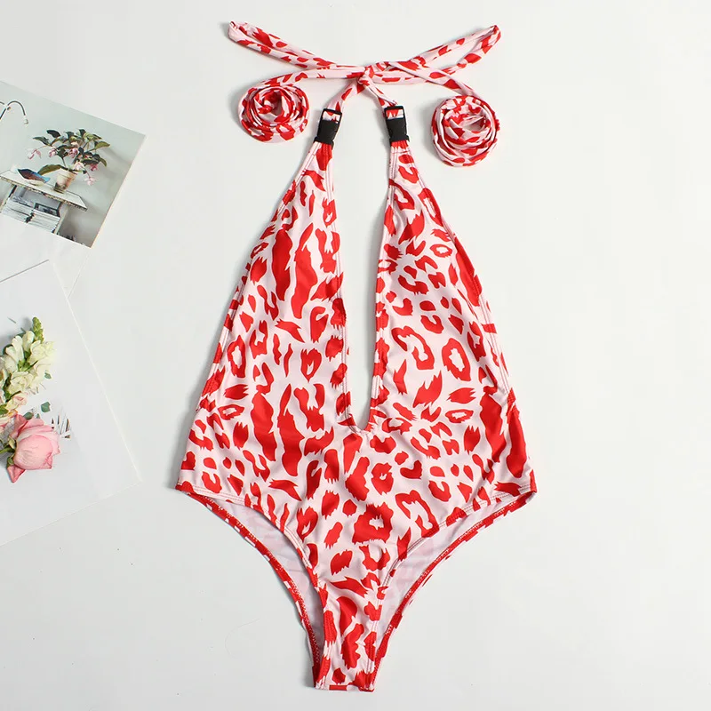 Женский купальник-бикини с леопардовым принтом, с глубоким V-образным вырезом, купальный костюм, S-XL