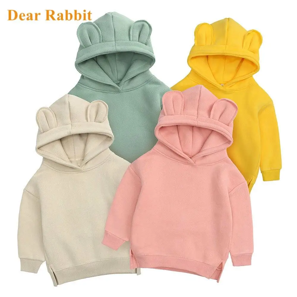 Милые толстовки с капюшоном для маленьких девочек осенний флисовый свитер для мальчиков с ушками медведя, весенняя одежда для маленьких мальчиков однотонная детская одежда