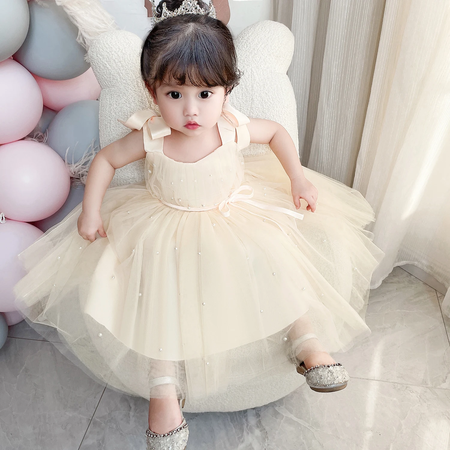 Детское платье без рукавов, на возраст 1-5 лет, из тюля, с жемчугом
