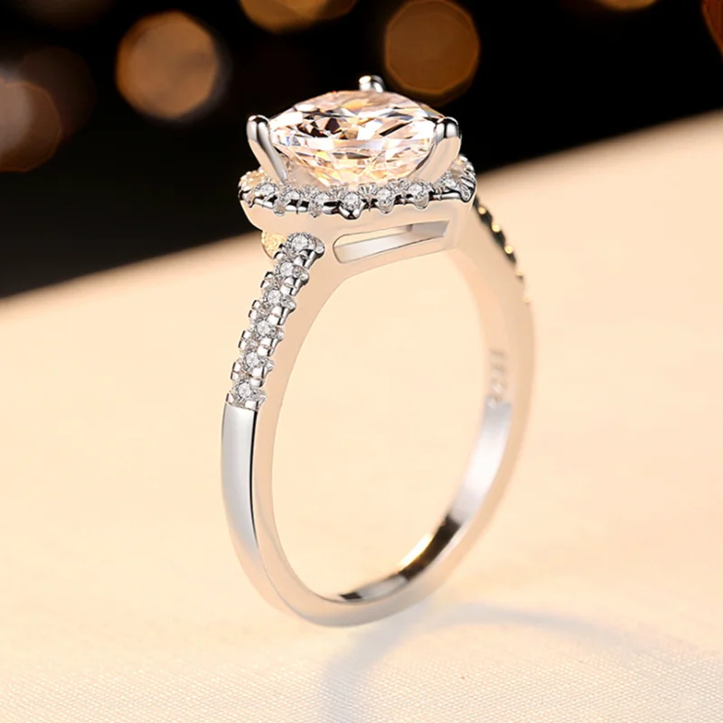 Серебряное кольцо квадратной формы с муассанитом, 1-3 карата