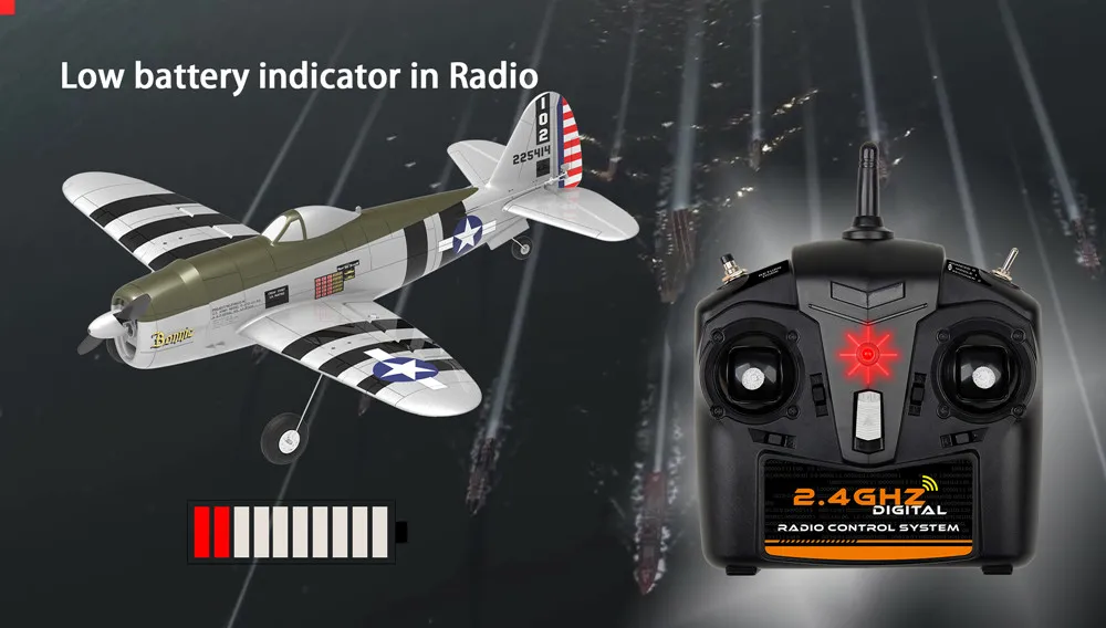 1.Eachine первый высокомасштабный RTF мини P-47 Razorback Bonnie Warbird с полетным контроллером, 4ch радио, Lipo батарея и зарядное устройство, больше ничего не купить или предоставить