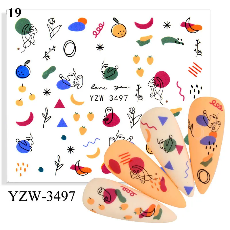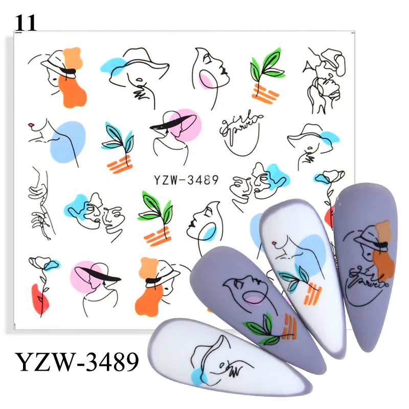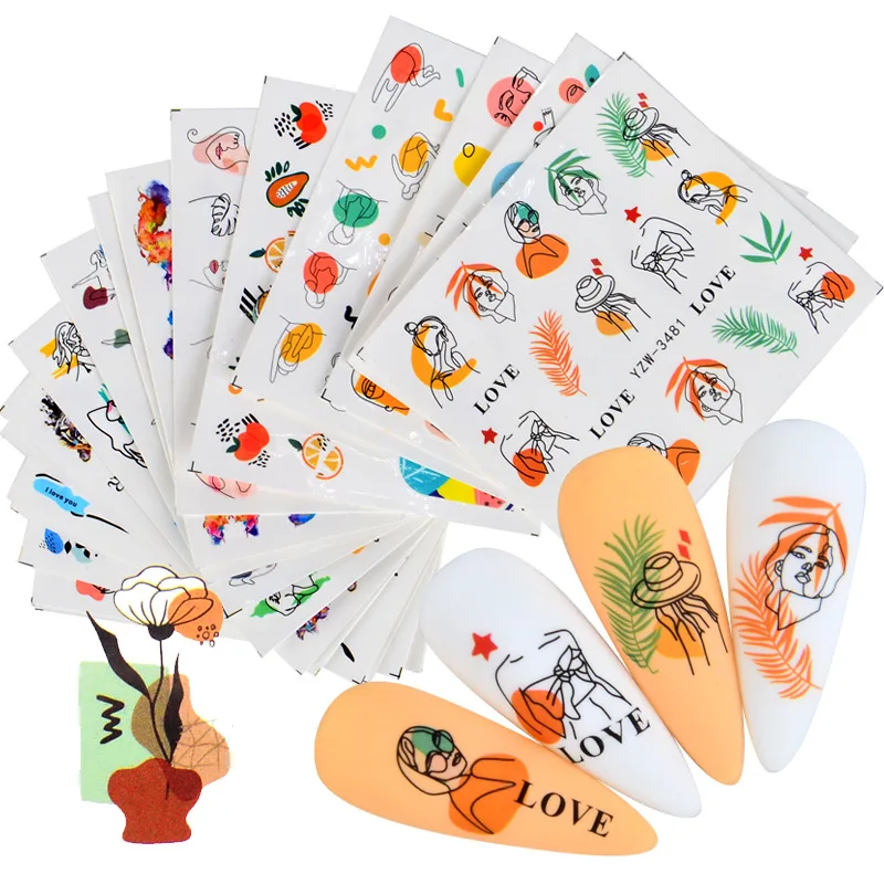 Абстрактные наклейки для ногтей с изображением лица женщины, Водные...