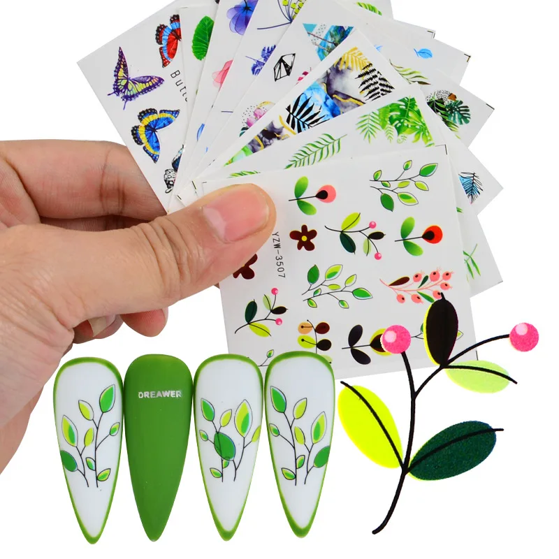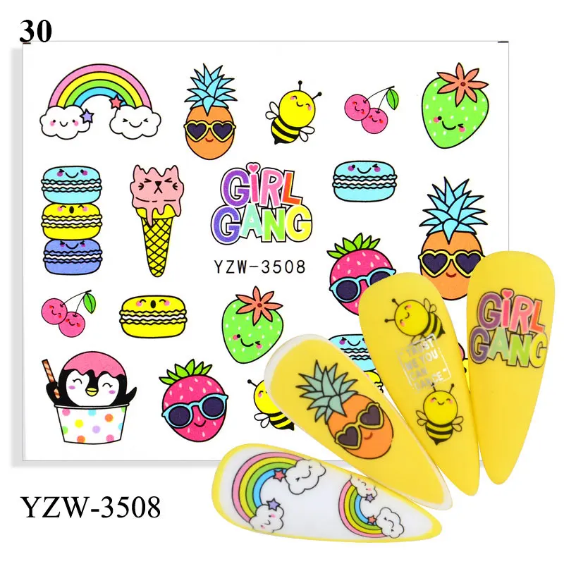Наклейки для ногтей, фрукты, флора, лицо, граффити, Бабочка, водяно...
