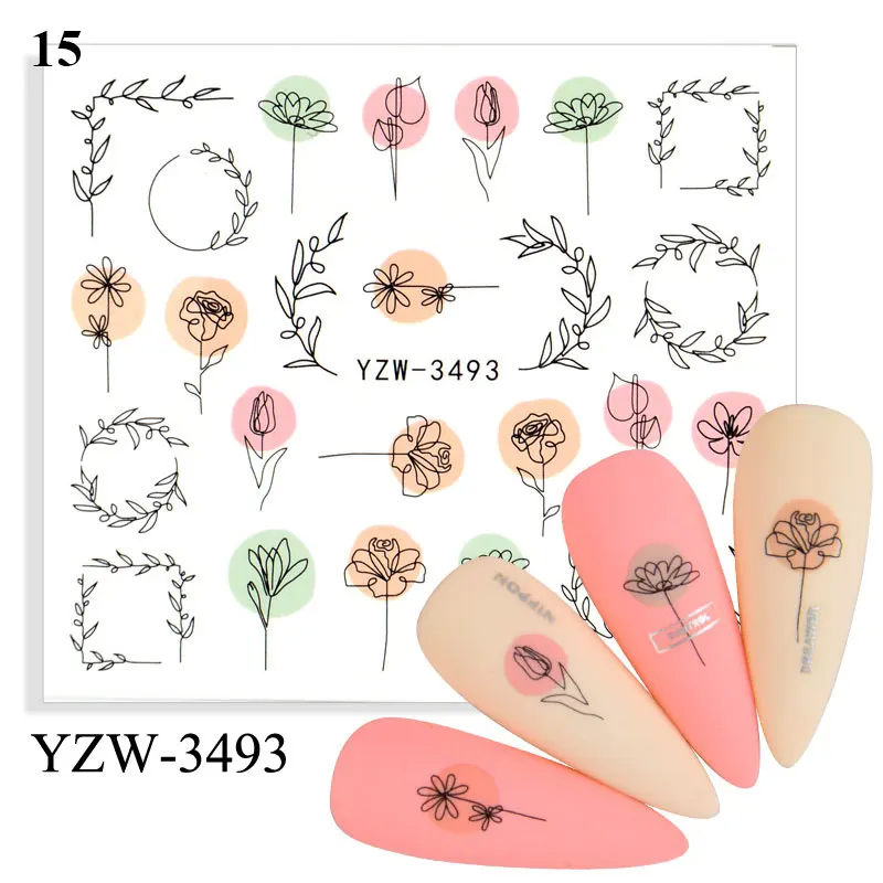 Черные линии наклейки на ногти цветок Leavf, Водные Наклейки растений абстрактный портрет ползунок для дизайна ногтей летний Нейл-арт украшения