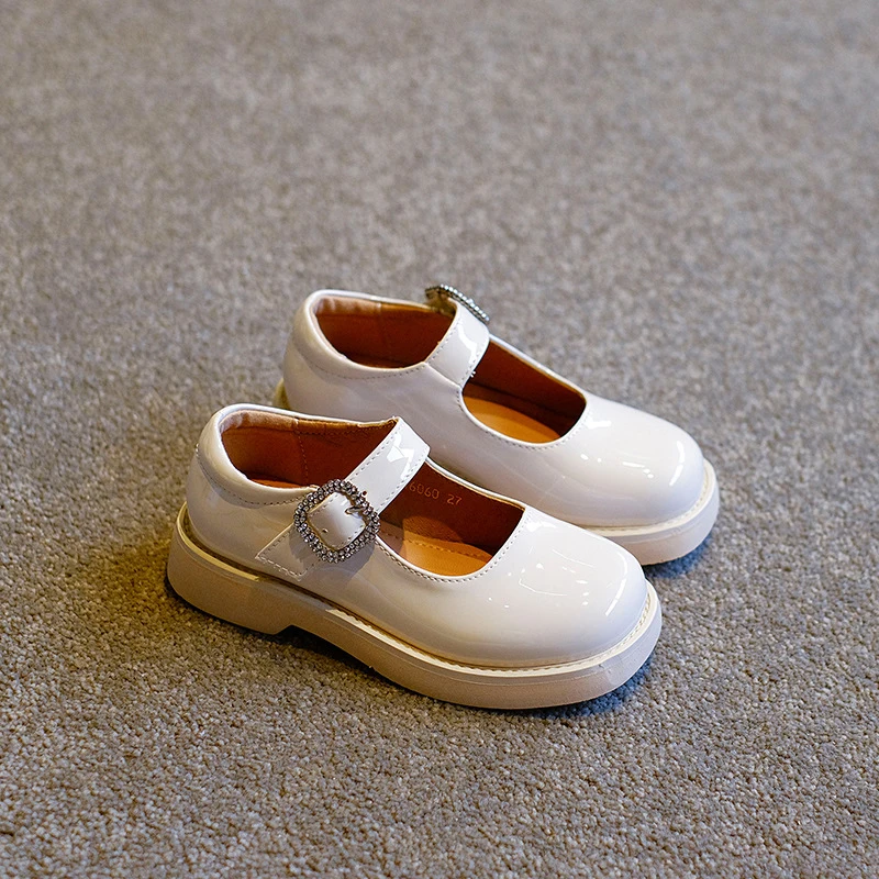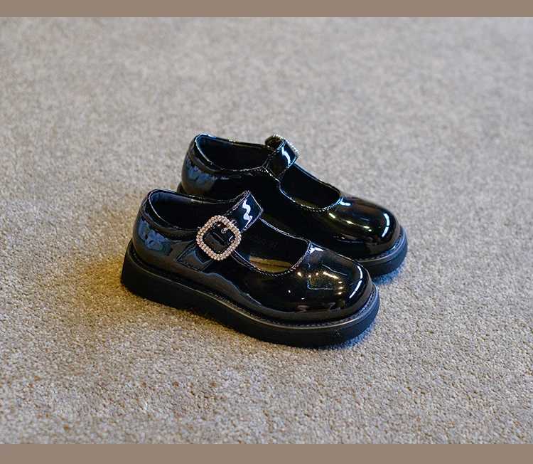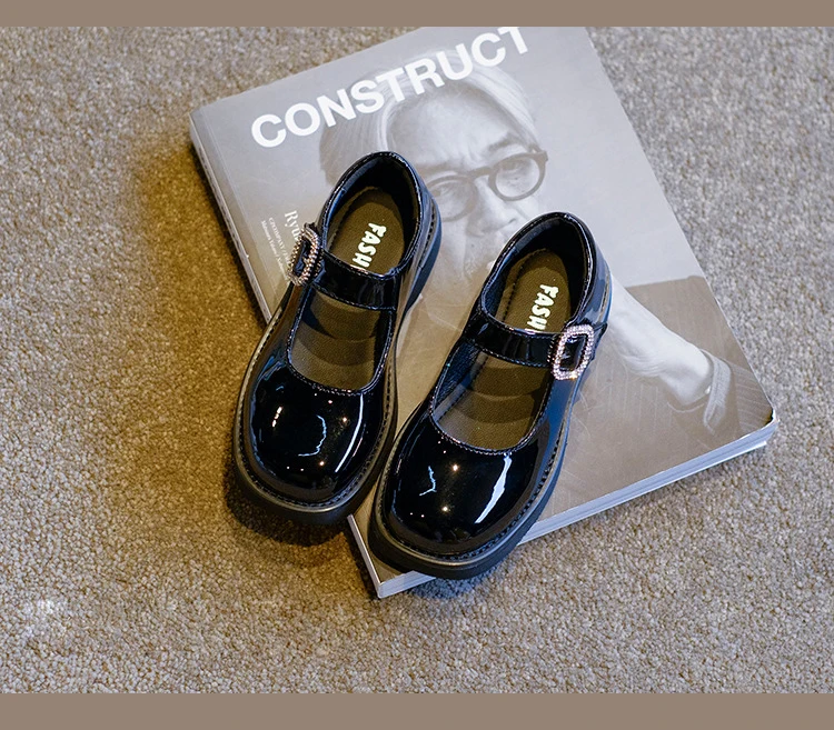 Новинка, Осенняя детская обувь с бантом для принцесс, брендовые классические туфли для маленьких девочек, детские черные кожаные Туфли Мэри Джейн на плоской платформе со стразами