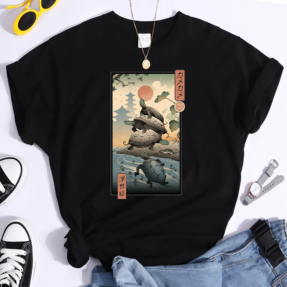 Женские футболки в японском стиле укиё, летняя модная футболка, Повседневная модная футболка, одежда высокого качества, футболка с коротким рукавом, Топ