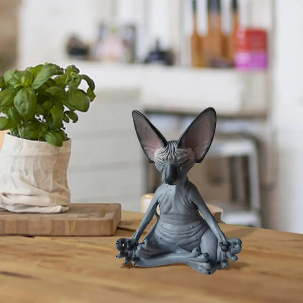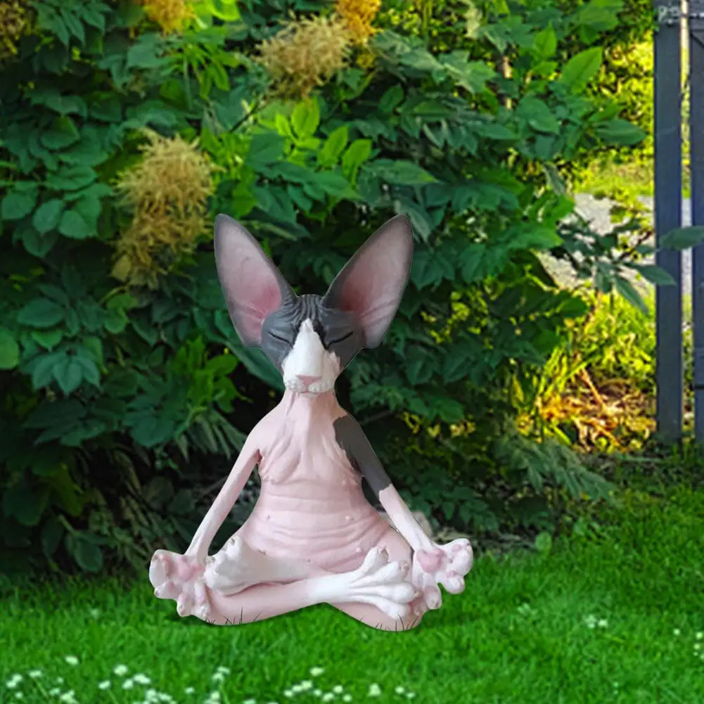 Zen садовая статуя кота ручная работа Статуэтка ZenСкульптура животных Волшебные сады домашний декор безволосый Сфинкс смола открытый газон Декор