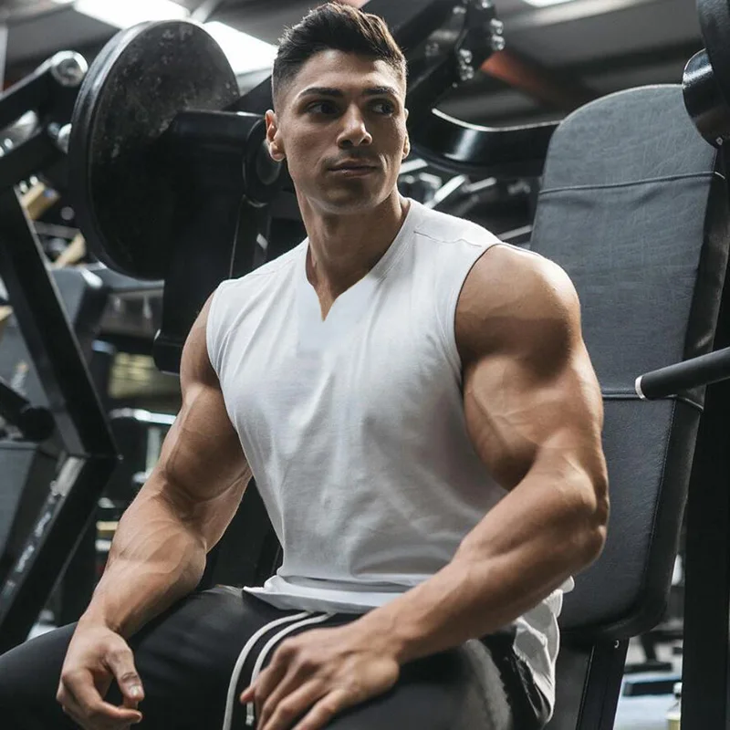 Майка Мужская Спортивная, без рукавов, с V-образным вырезом