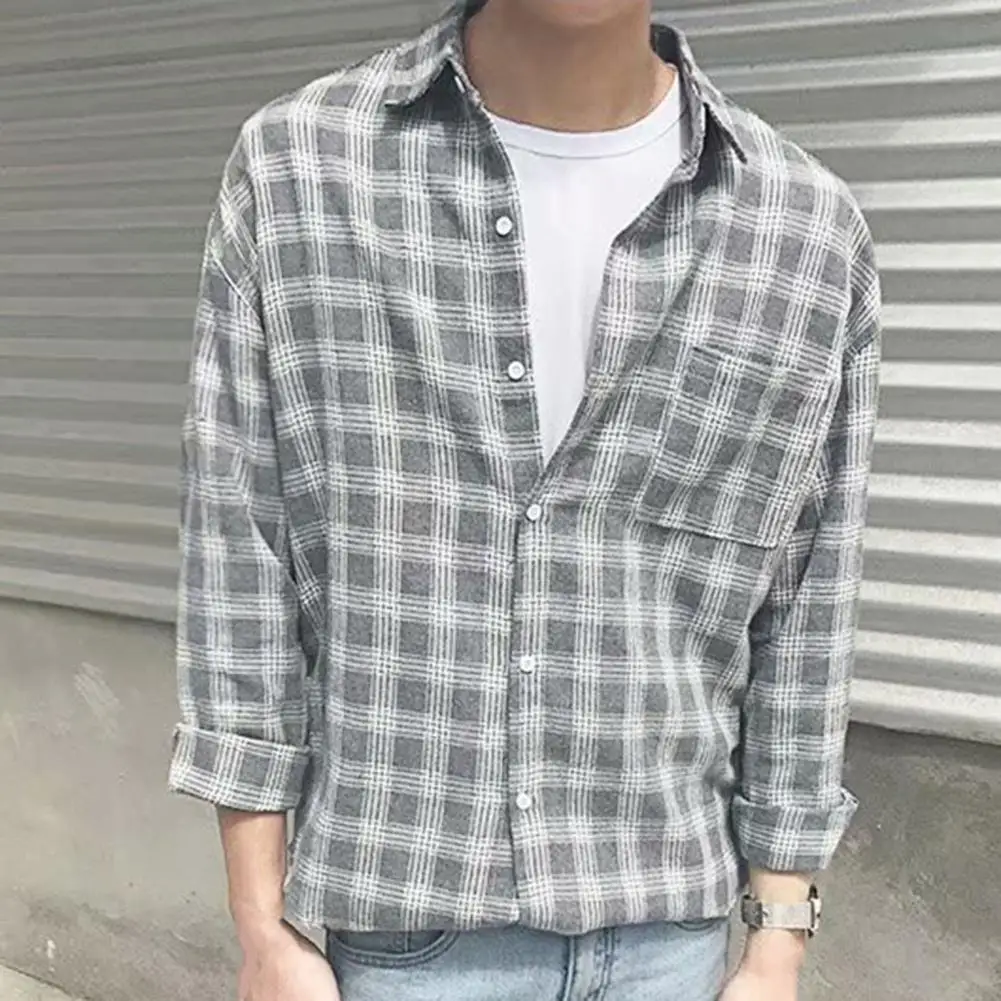 Мужская однобортная рубашка в клетку, с отложным воротником и длинными рукавами, осень 70%