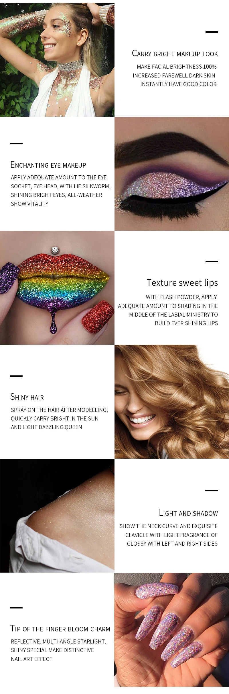 Идеально подходит для вечеринок, фестивалей-Используйте его для сверкающих глаз, щек и эффектного боди-арта для любого платья без спинки или без бретелек.