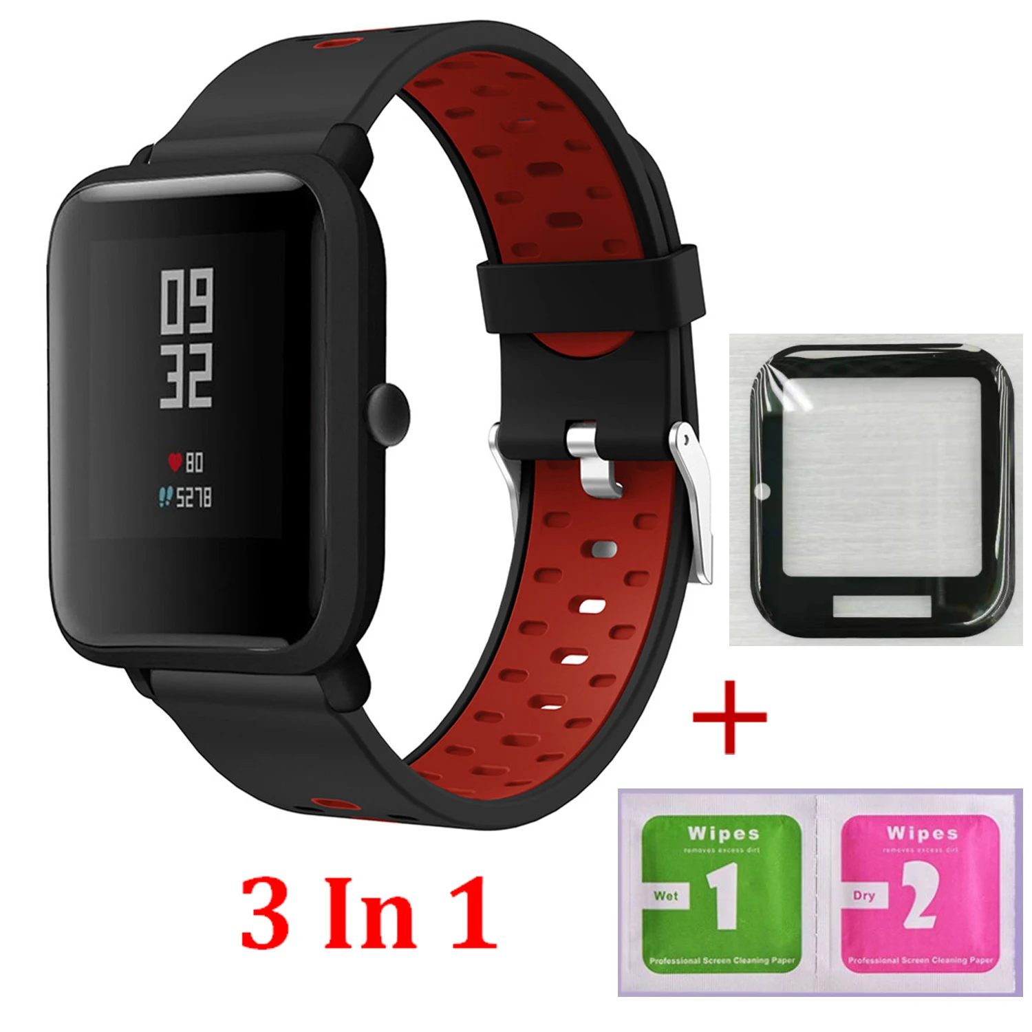 Силиконовый ремешок 20 мм для Xiaomi Huami Amazfit GTS2eGTS2BIPPOP BIP 1s, Защитная пленка для экрана браслета для часов из ПММА