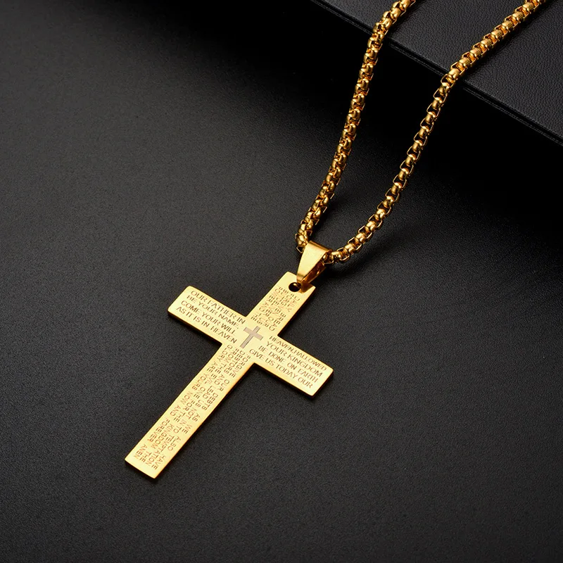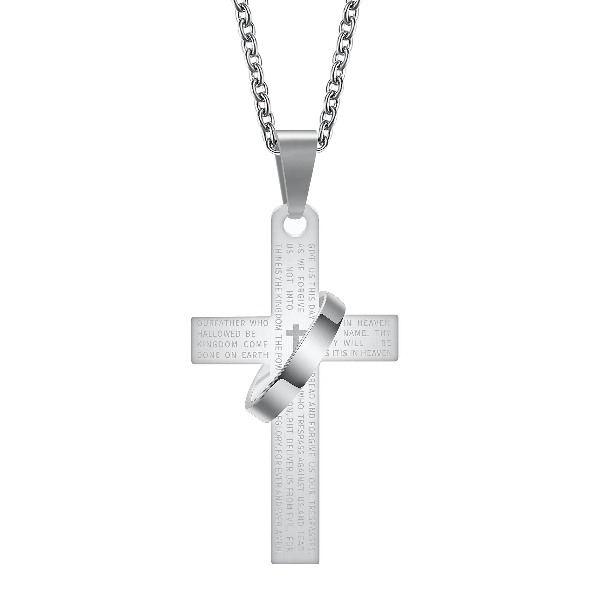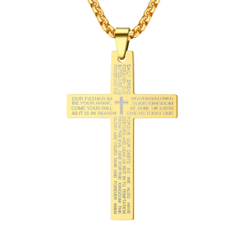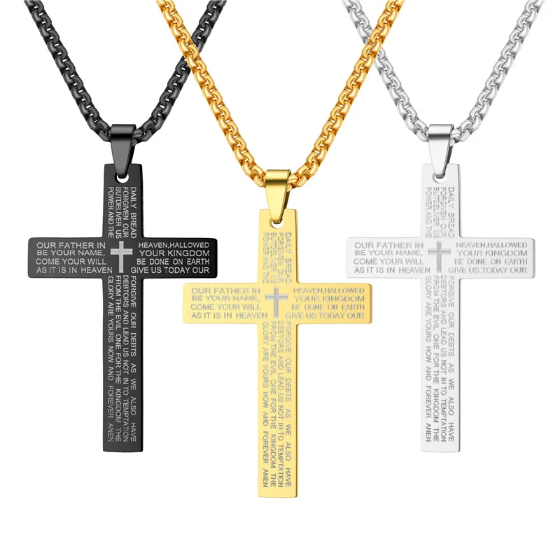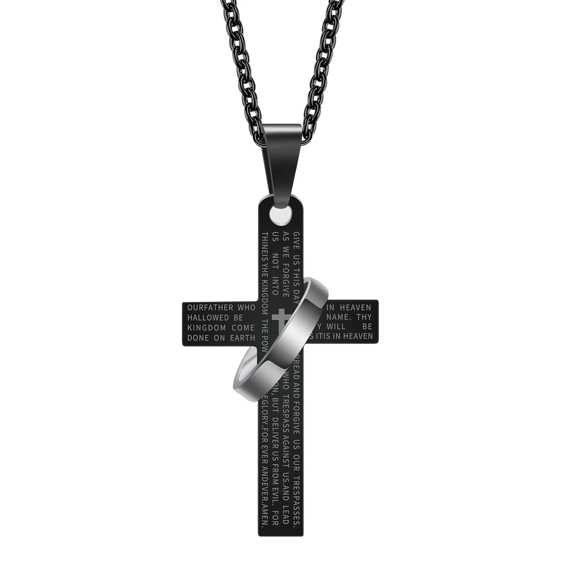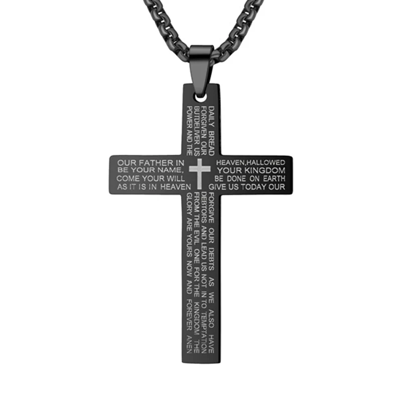 Цепочка с крестом из нержавеющей стали для мужчин и женщин, ожерелье с христианским Иисусом в ретро стиле, черная молитвенная подвеска