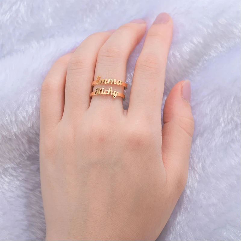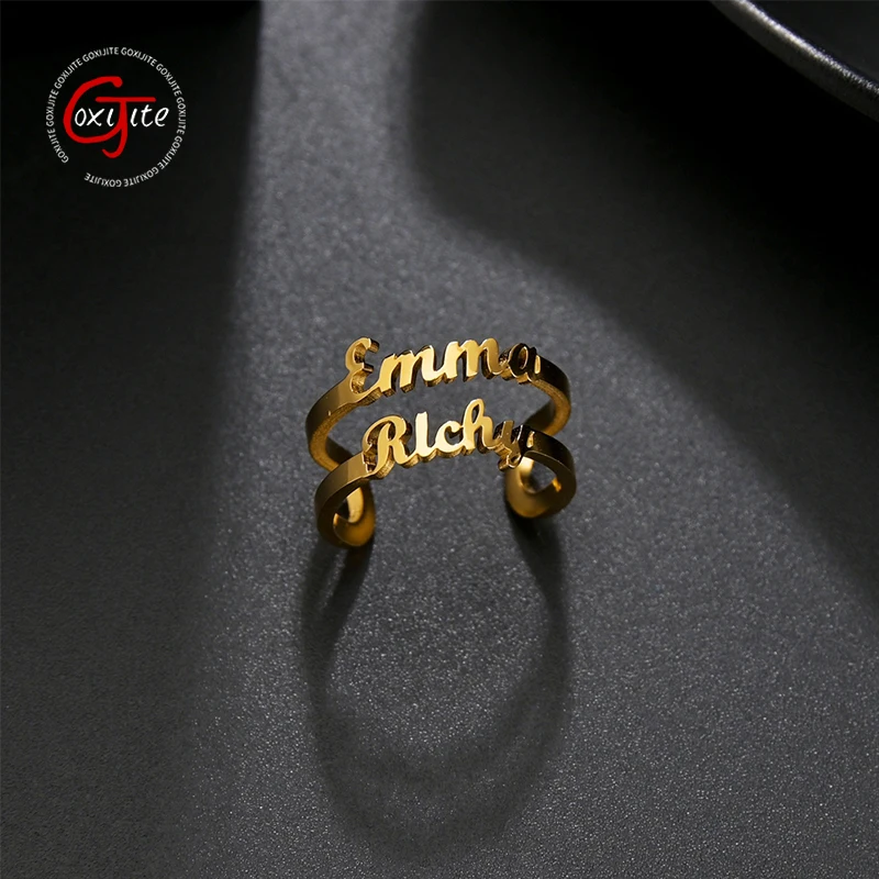 Имя:Регулируемое кольцо Goxijite с именем, открытые двойные имена на заказ, кольца для женщин, ювелирные изделия из нержавеющей стали, прекрасный подарок
