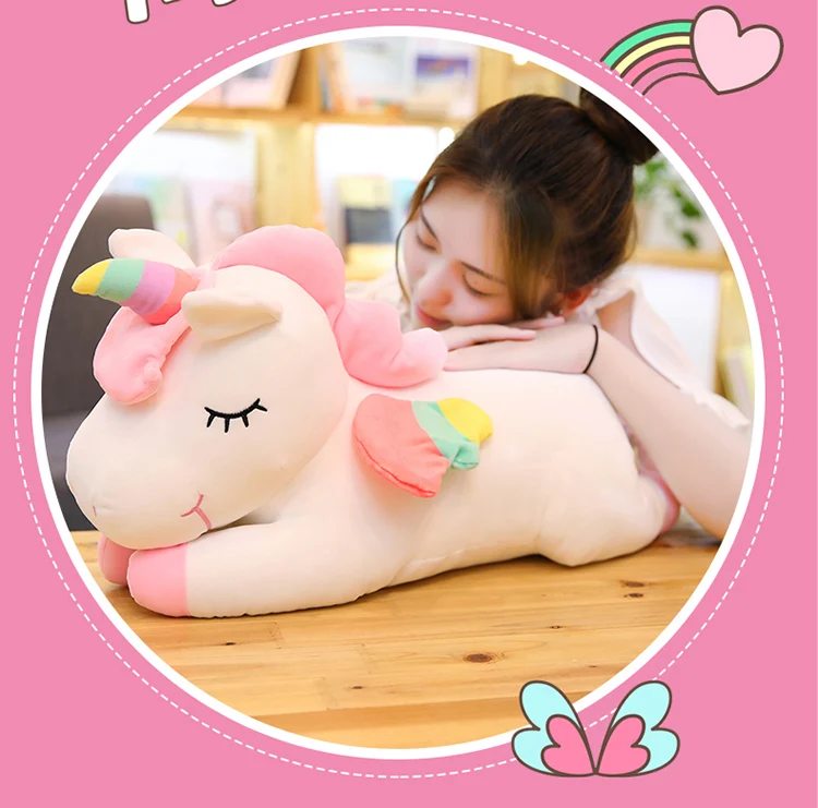 1 шт. 80 см kawaii гигантский Размеры лежа Единорог плюшевая игрушк...