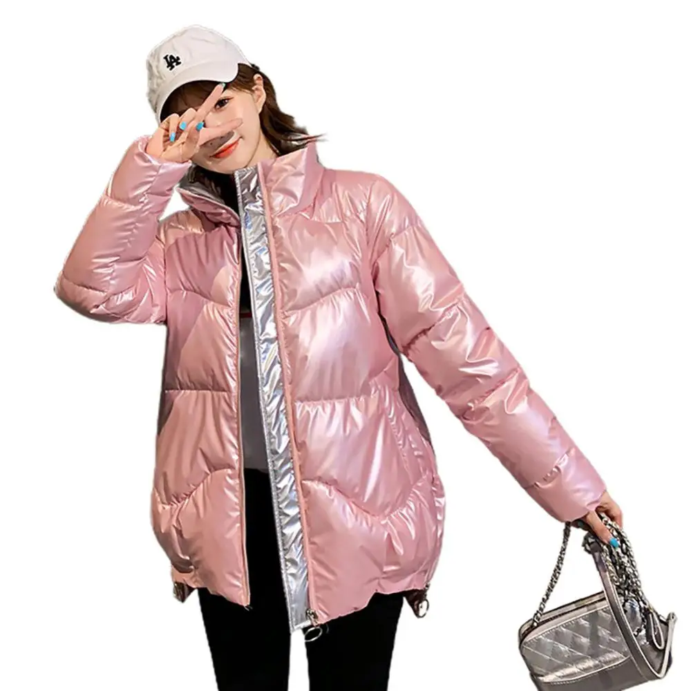 40% HOTFashion женские осень-зима глянцевая со стоячим воротником, куртка с хлопковой подкладкой пуховое пальто