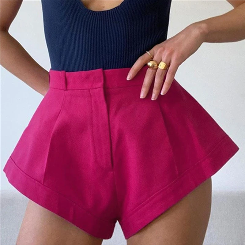 Женские шорты с высокой талией, широкие однотонные шорты, летние модные шикарные шорты с высоким вырезом, расклешенные, для офиса, лето 2021