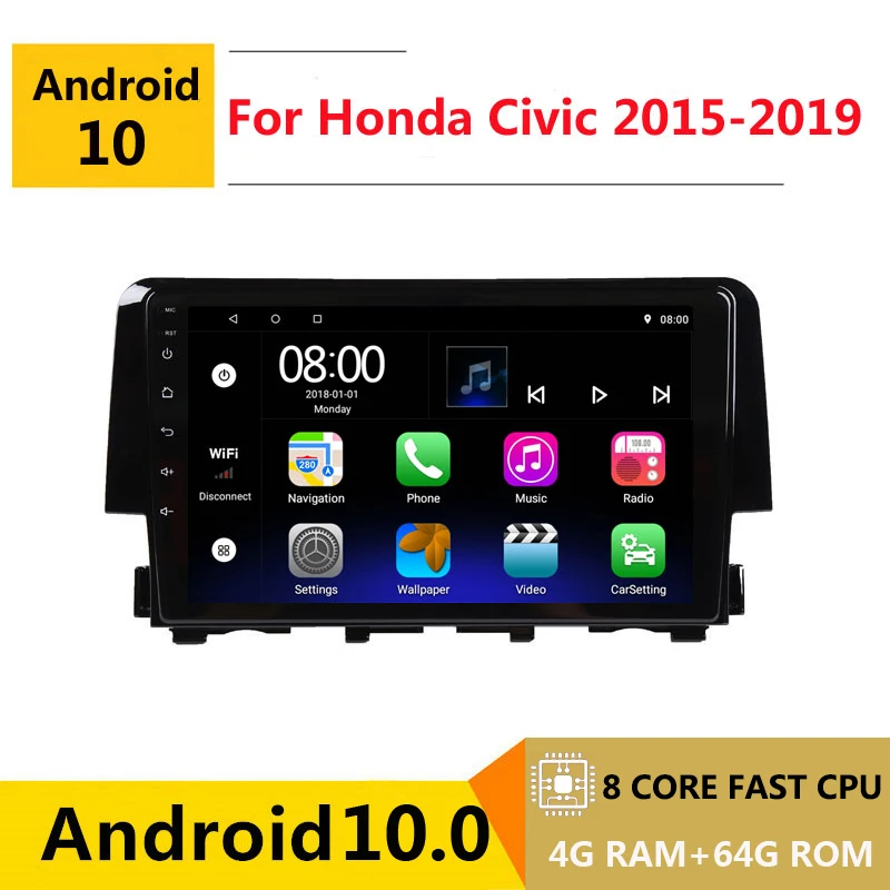 Автомагнитола 2 din, 8 ядер, android 10, Автомагнитола для Honda Civic 2015, 2016, 2017, 2018, 2019, навигация GPS, DVD, мультимедийный плеер