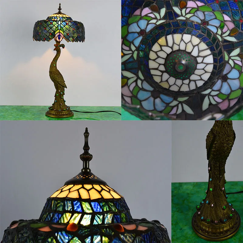Серия Тиффани ретро Европейский стиль вилла отель спальня отель прикроватный светильник Павлин основа для настольной лампы E27 AC110V 220V