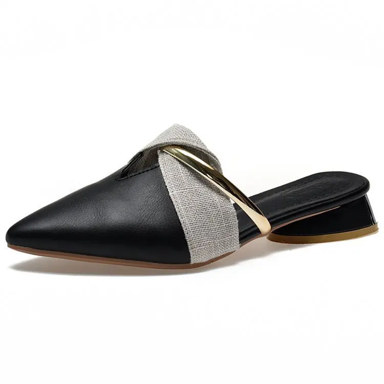 Мюли женские без задника, заостренный носок, низкий каблук, без застежки, пикантные тапочки, офисная обувь, лето