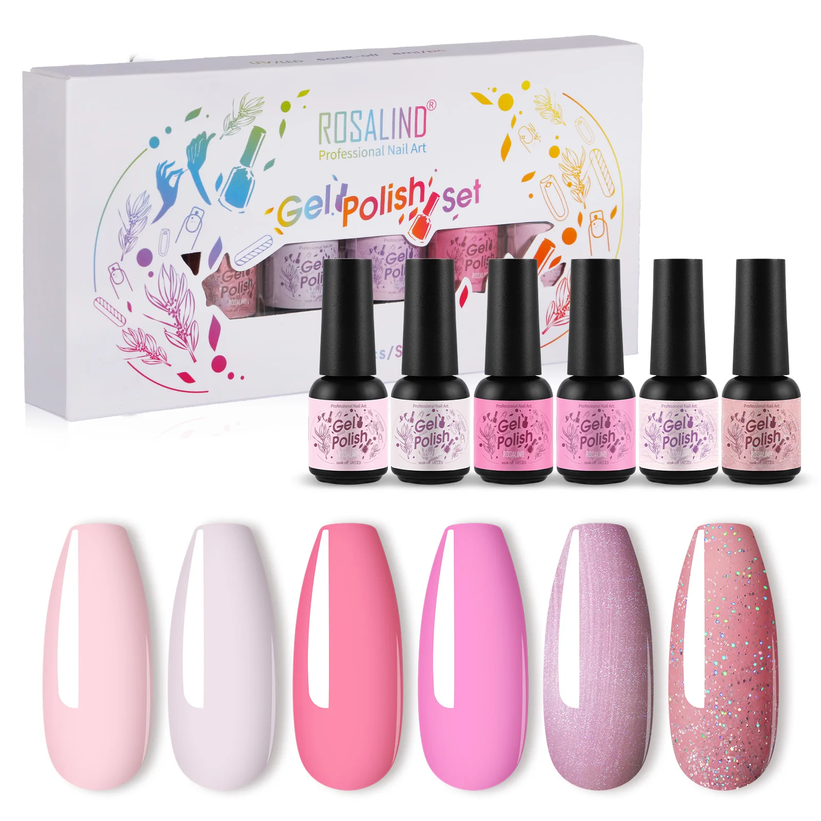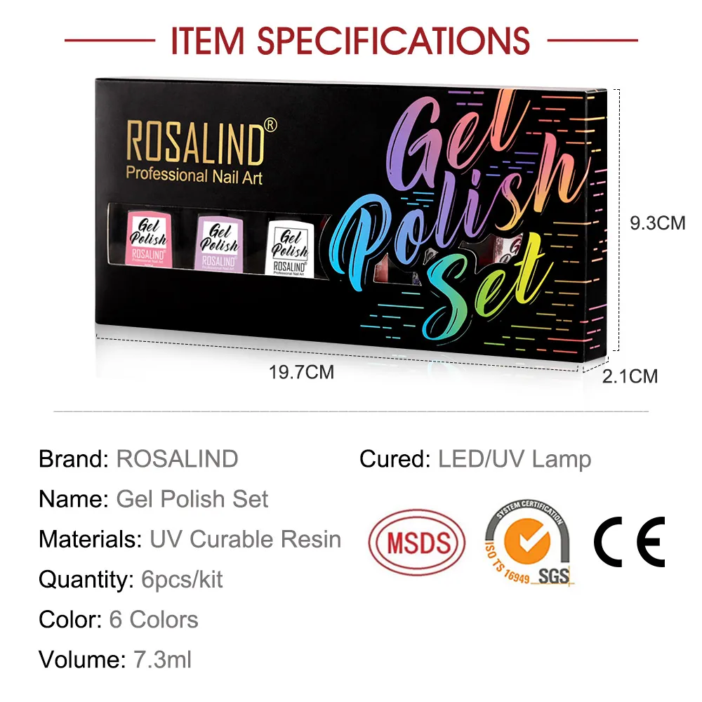 Набор гель ROSALIND, 8 мл, Подарочная коробка, гибридные лаки для дизайна ногтей, набор гелей, удаляемых замачиванием, все для маникюра, стойкий дизайн ногтей, другие цвета