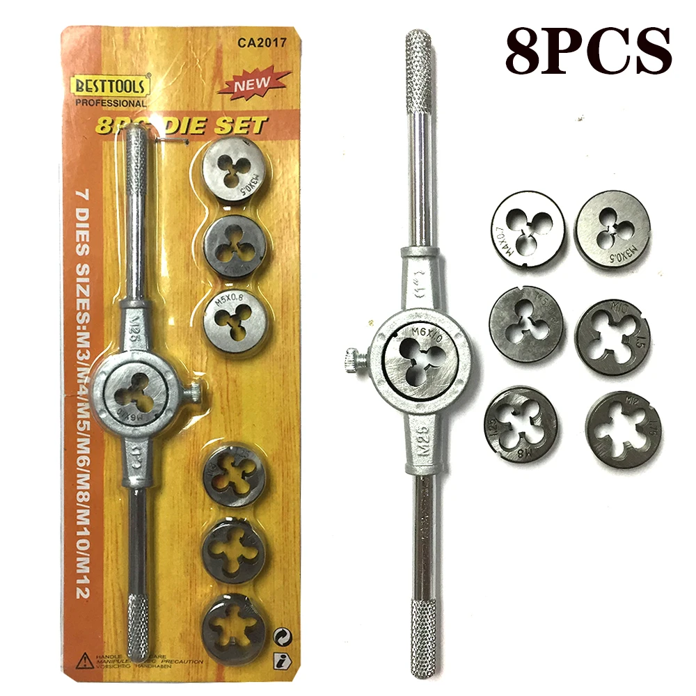 Многофункциональный NC Винт Нажмите и высечки набор внешних резьбы нарезания ручного инструмента набор резьбы Отвертка с M6 M7 M8 M1 Характеристики: товар Тип: метрический набор штампов Материал: легированная сталь Цвет: серебристые инструменты Количество: 8/12 шт/20 шт Подходит для: ручной винтовой отвертки и ручных инструментов метрические краны