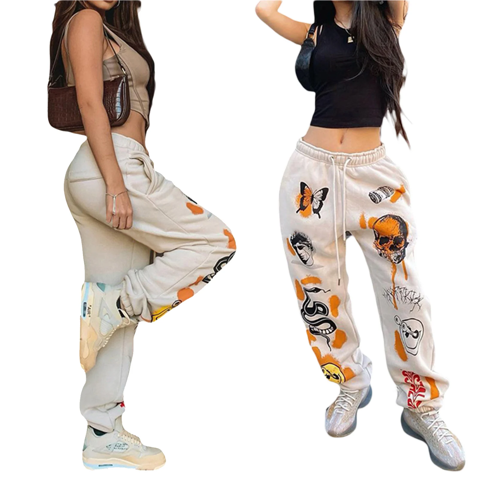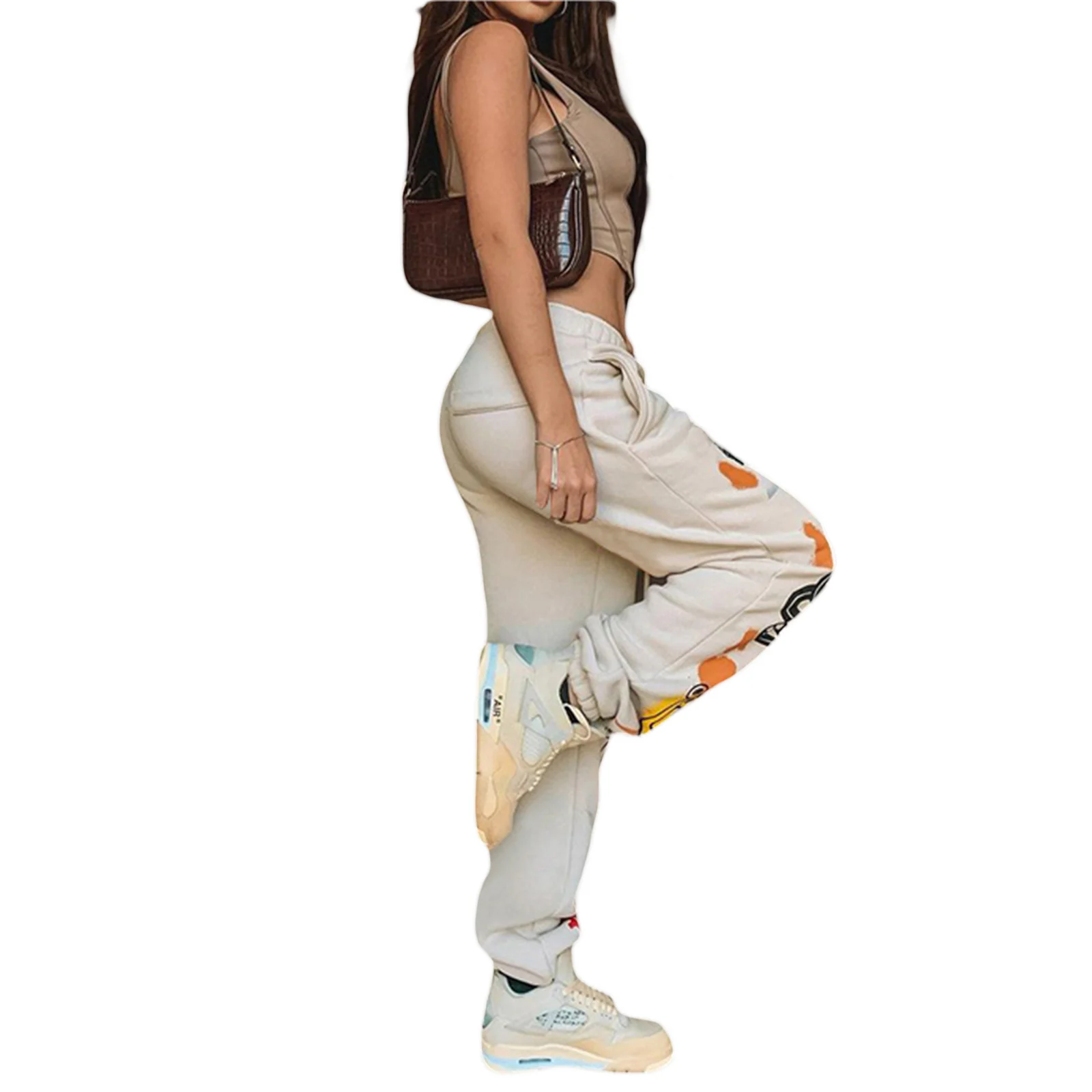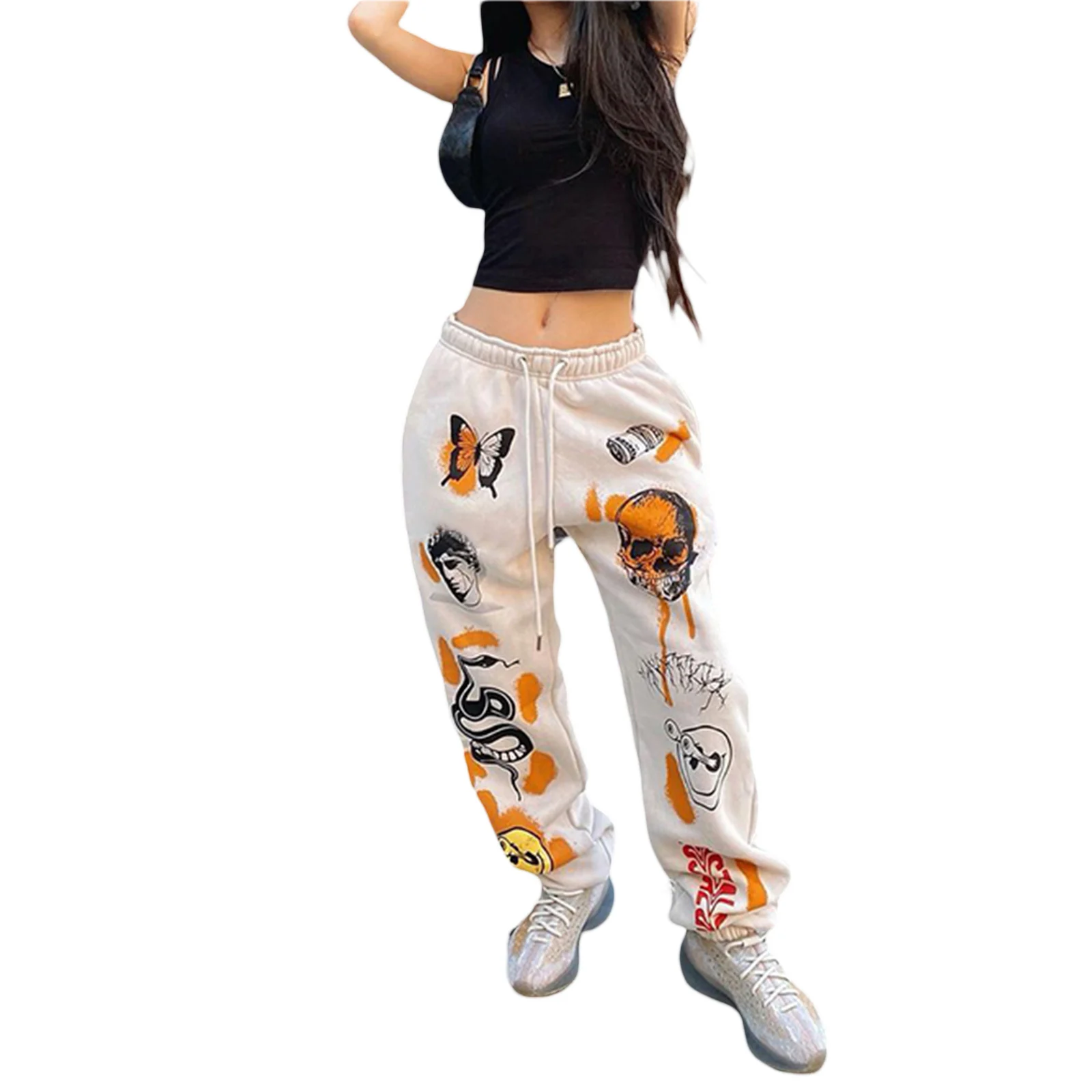 Женские повседневные свободные тренировочные брюки с эластичным поясом и завязкой, штаны для бега с графическим принтом