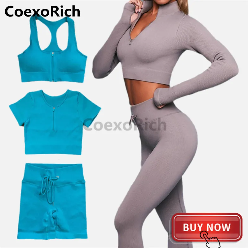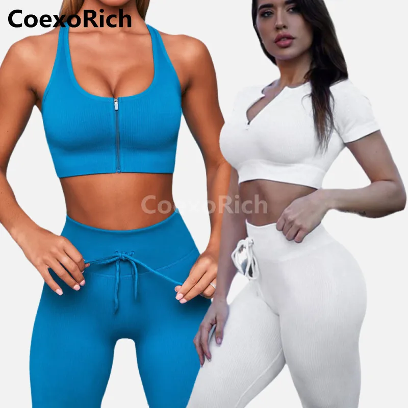 Бесшовный спортивный бюстгальтер, одежда для тренировок, женская рубашка для фитнеса, на молнии, короткий рукав, укороченный топ, спортивные костюмы, штаны для йоги, спортивные шорты, леггинсы