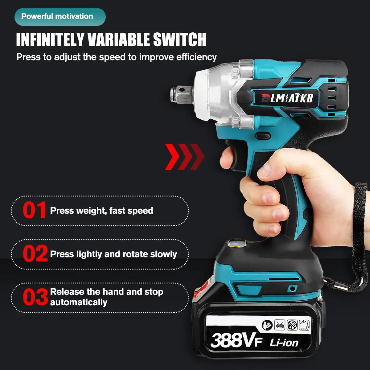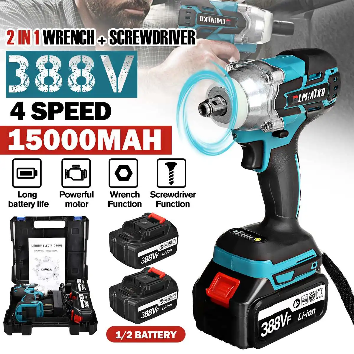BLMIATKO обновление 388V 4 Скорость бесщеточный Электрический Аккумуляторный ударный гайковерт Перезаряжаемые 12 дюйма ключ, дюймовый стандарт Мощность инструменты с 2 Батарея