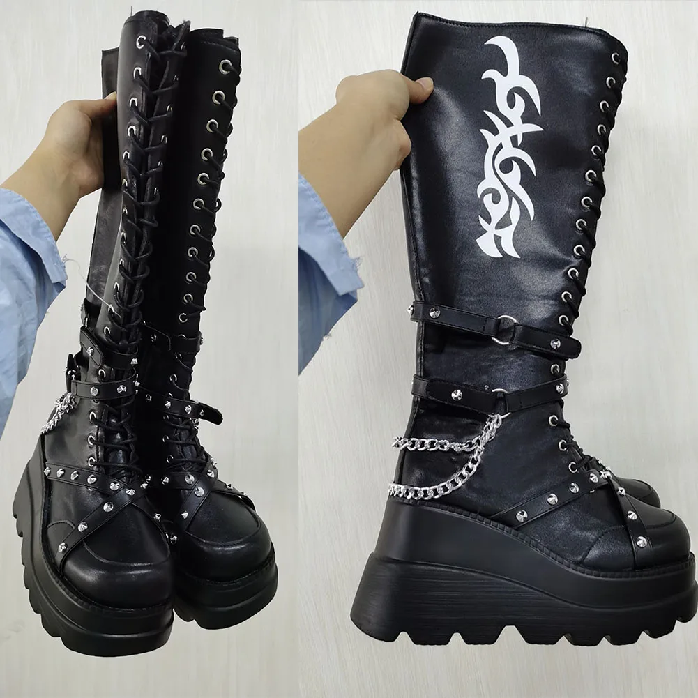 Sarairis размера плюс 43 Женская обувь до колена на молнии в готиче...
