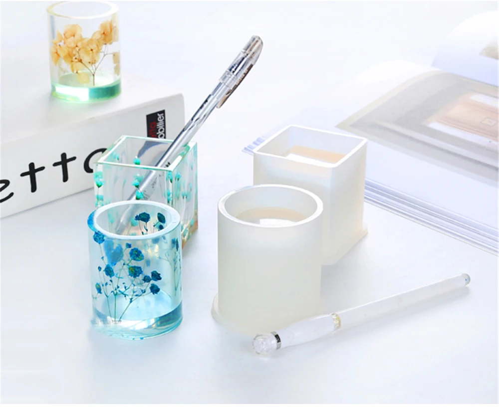 Силиконовая форма сделай сам, подставка для ручек куб, цилиндр из эпоксидной смолы, литые формы, чашка, цветок, растение, горшок, настольный органайзер, формы ручной работы