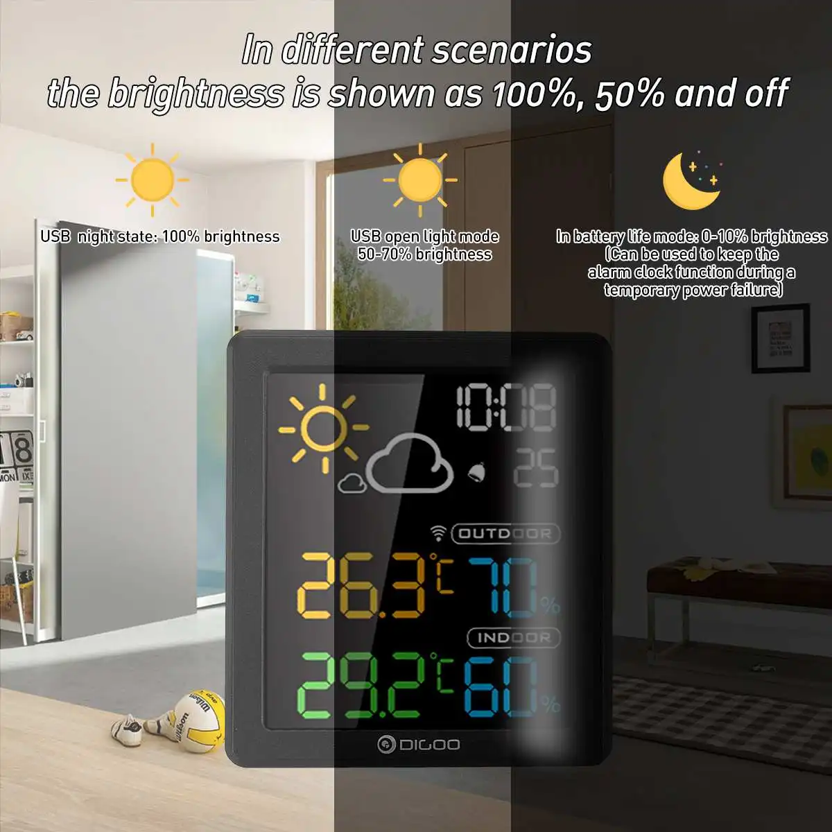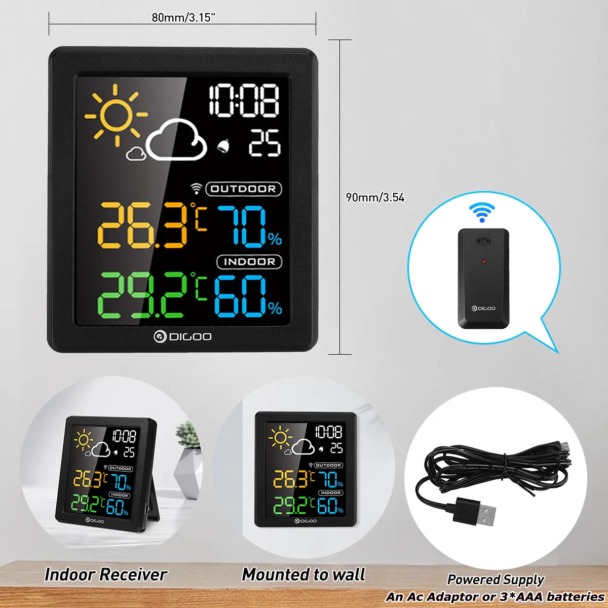 Метеостанция DIGOO HD с цветным ЖК-дисплеем, мини-будильник, умный гигрометр, термометр, Повтор сигнала, настольные часы с двумя часами