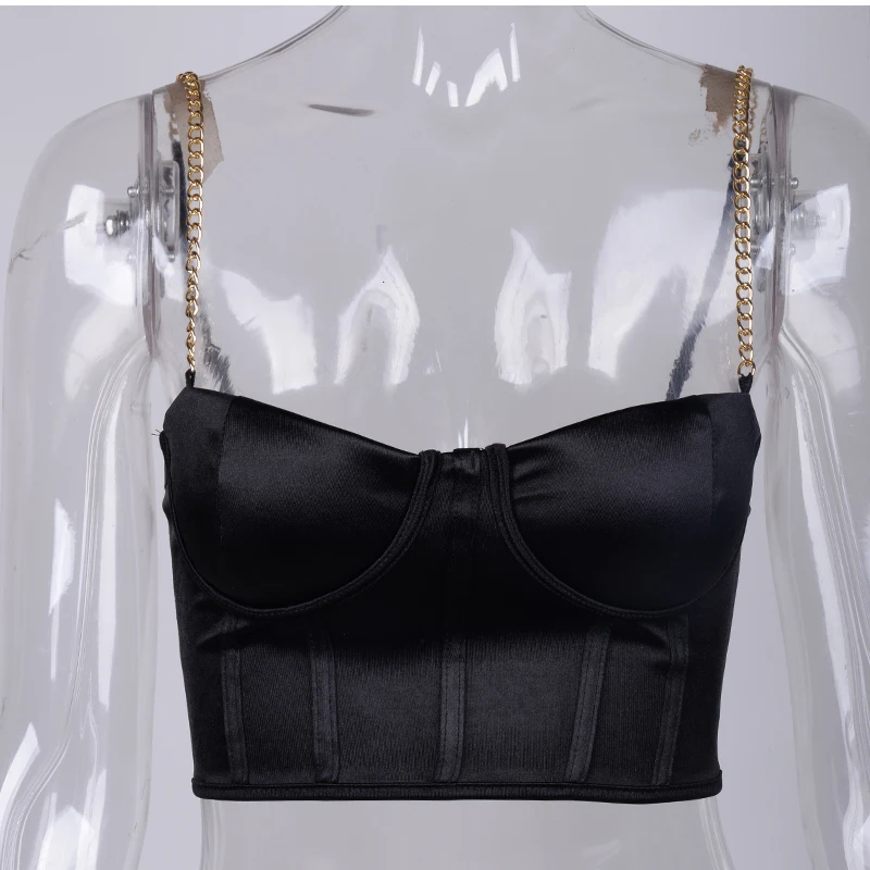 Майка женская атласная без рукавов, пикантный Модный облегающий топ с низким вырезом, с подкладкой и цепочками, укороченный топ, однотонная, на лето