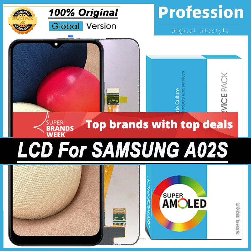 100% оригинальный 6,5 ''AMOLED дисплей для Samsung Galaxy A02s A025M A025FDS A025GDS A025M, полный ЖК-сенсорный экран с сервисным пакетом